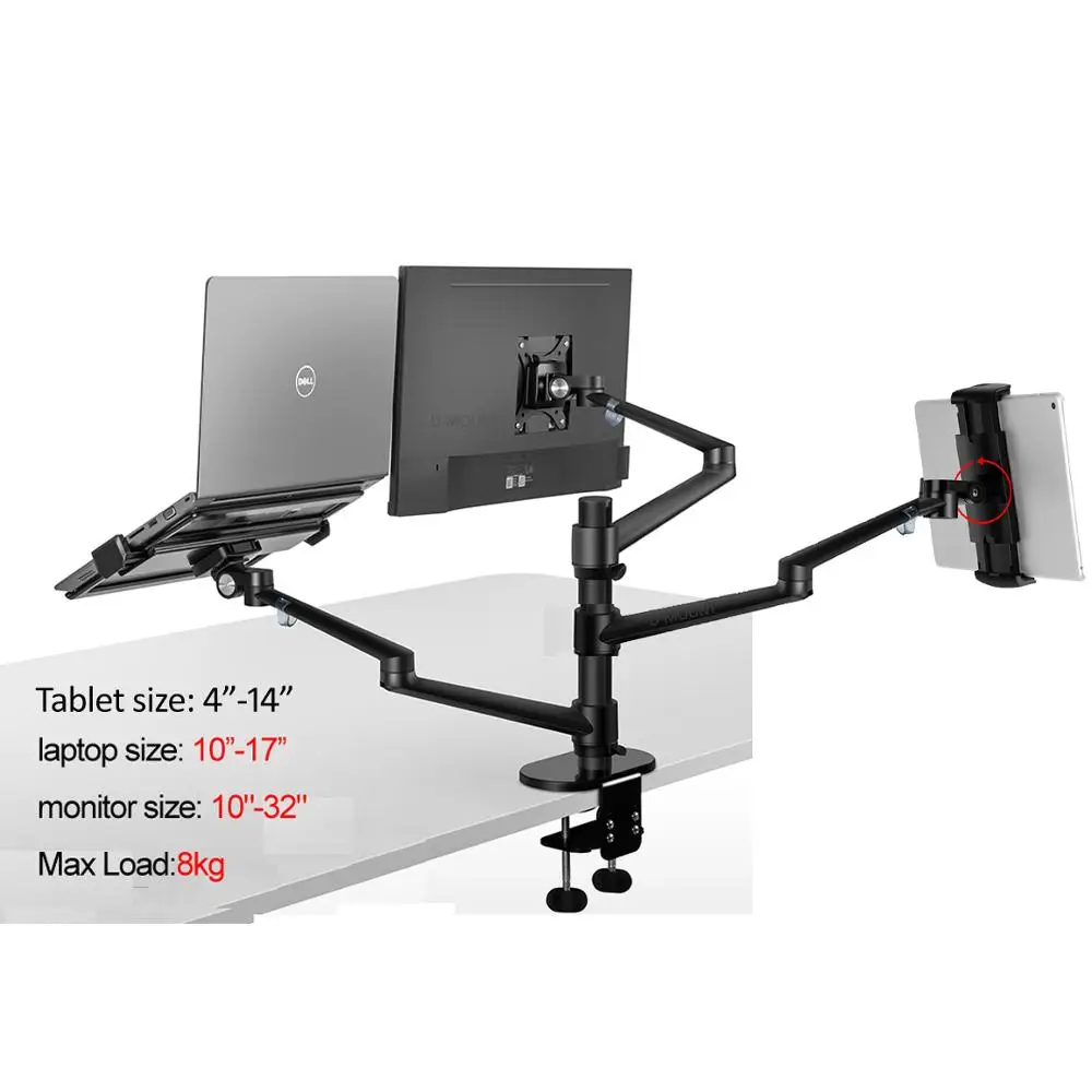 OL-20L, алюминиевая Многофункциональная подставка для ноутбука 10-17 дюймов, настольный держатель для мониторов 10-32 дюйма + Зажим 4-14 дюймов для планшетов и телефонов
