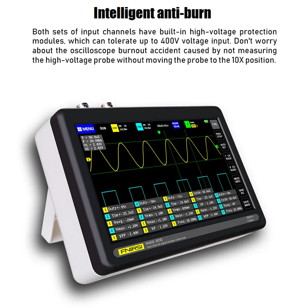 Цифровой планшетный осциллограф FNIRSI-1013D, двухканальный, 1GS, частота дискретизации, цифровой осциллограф