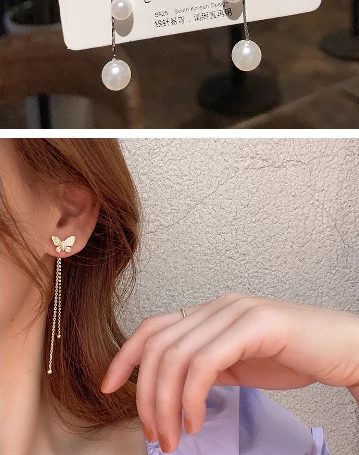 2020 Модные женские винтажные серьги с бабочкой и кисточками, ювелирные изделия для вечерние Свадебный ободок с жемчужинами, висячие серьги