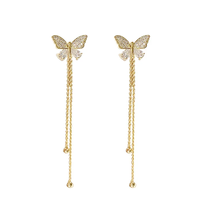 Женские Висячие серьги, длинные серьги-подвески с бабочками, золото...