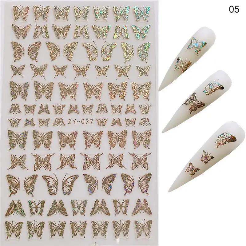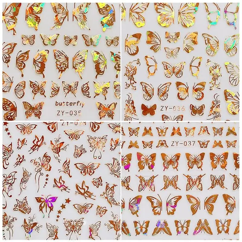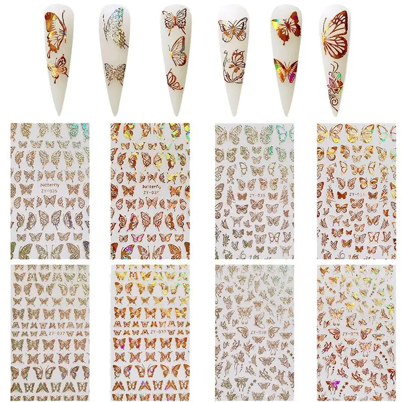 Лазерные 3D наклейки для дизайна ногтей в виде листьев бабочки, сам...