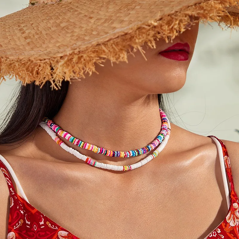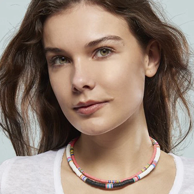 Богемное ожерелье из полимерной глины для женщин, серферские бусины, ожерелье-чокер из мягкой керамики, цветной ошейник, женское ювелирное изделие ручной работы