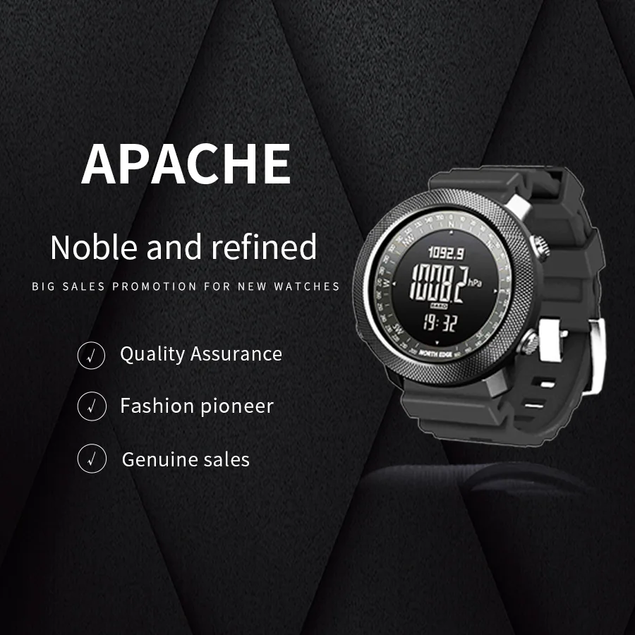Альтиметр/барометр/Компас/дайвинг/Водонепроницаемость 200 м/Двойное время/отсчет/калории/Будильник/Температура/с подсветкой/напоминание о низком энергопотреблении/шагомер/Устойчивость к низким температурам