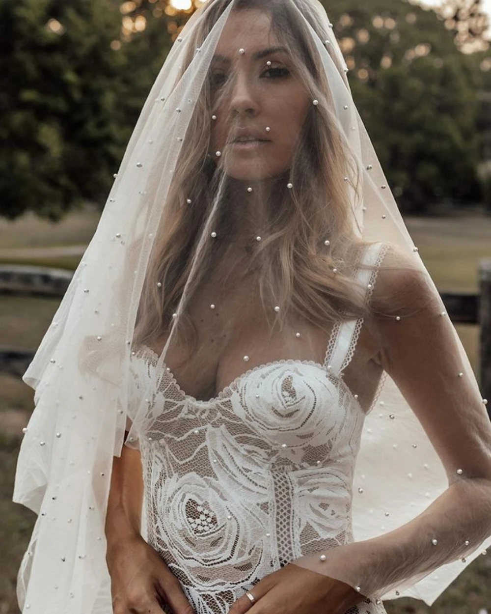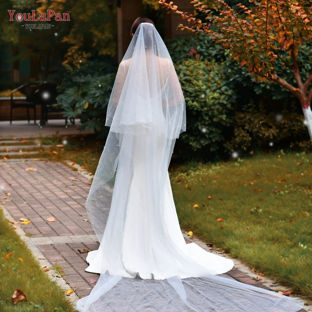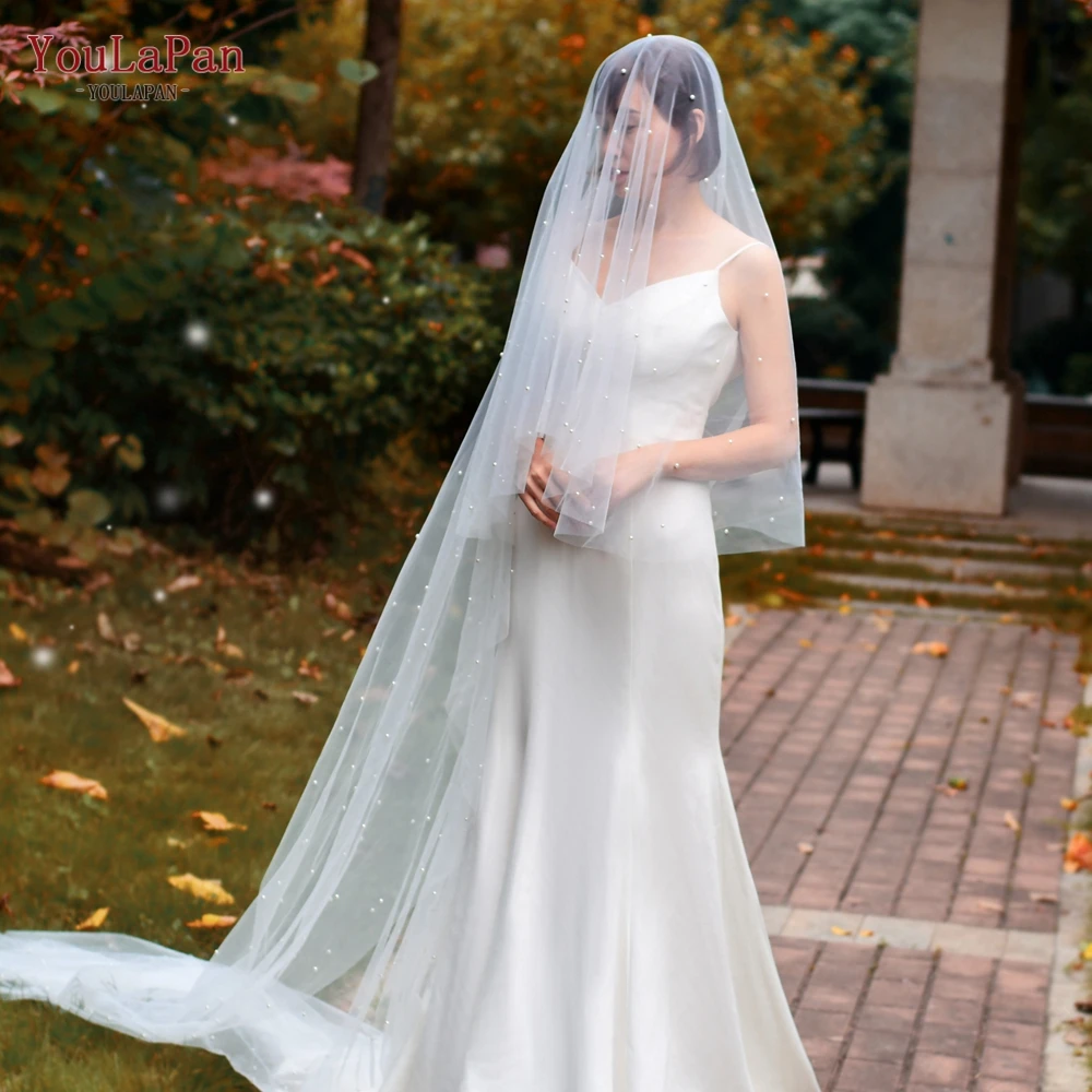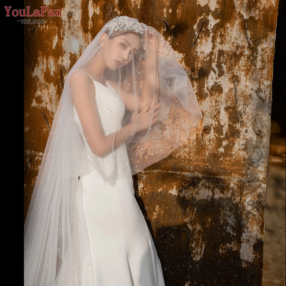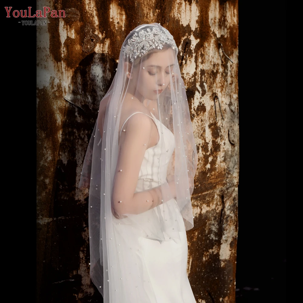 Фата YouLaPan V114 перламутровая вуаль с рубашкой, свадебная фата для невесты, 2 уровня, Белыйцвет слоновой кости, с жемчугом, фата для невесты, чехол для лица