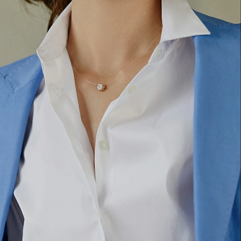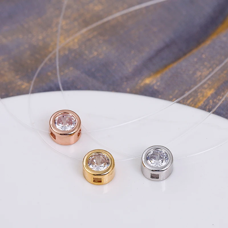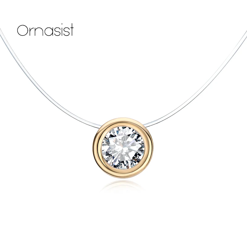 Женское колье на леске, с цирконом, золотого и серебряного цвета