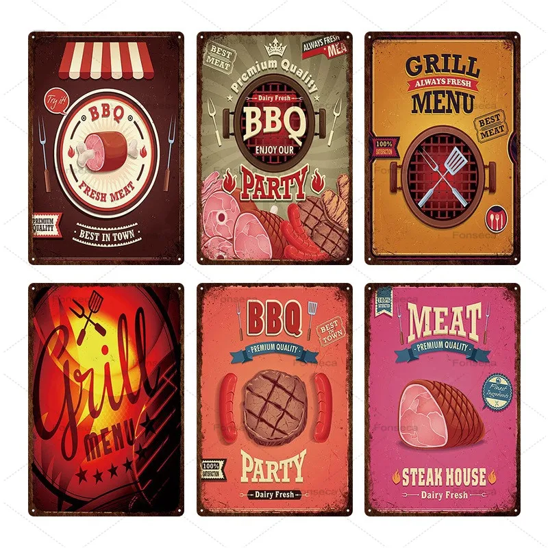 Металлическая Оловянная металлическая пластина для барбекю, ВИНТАЖН...