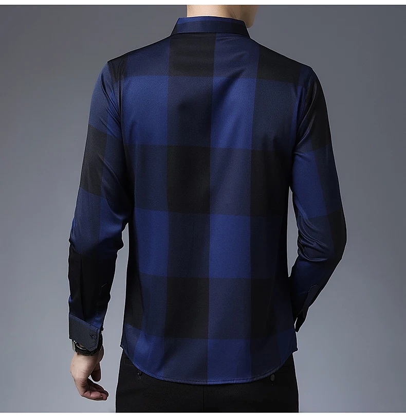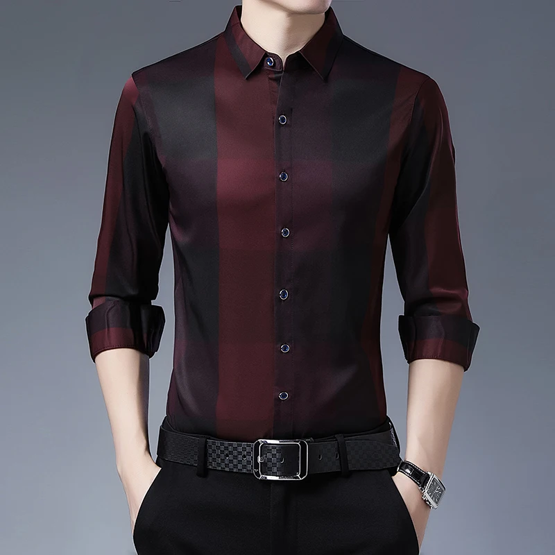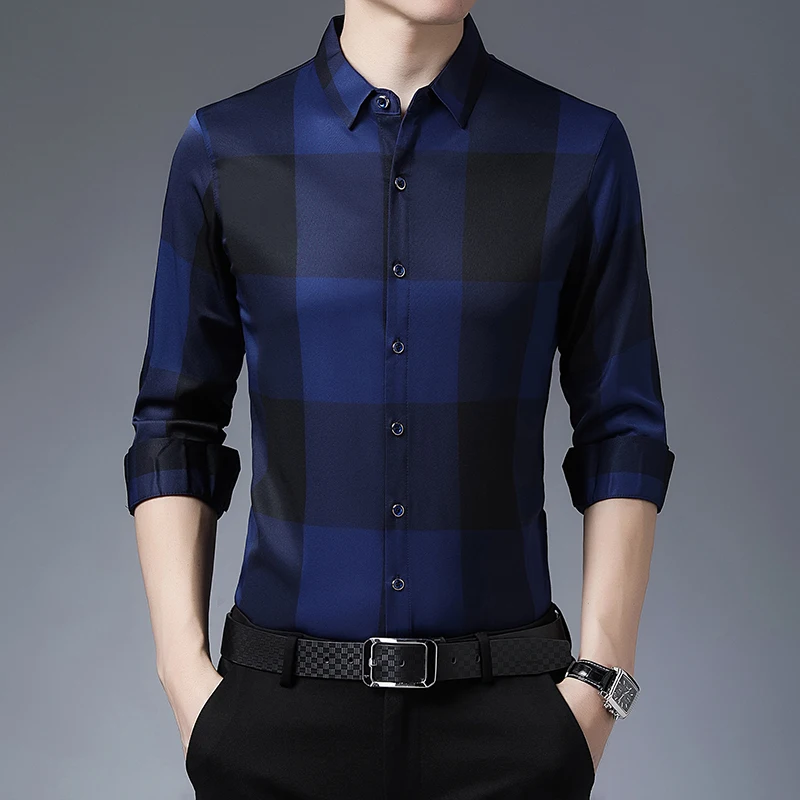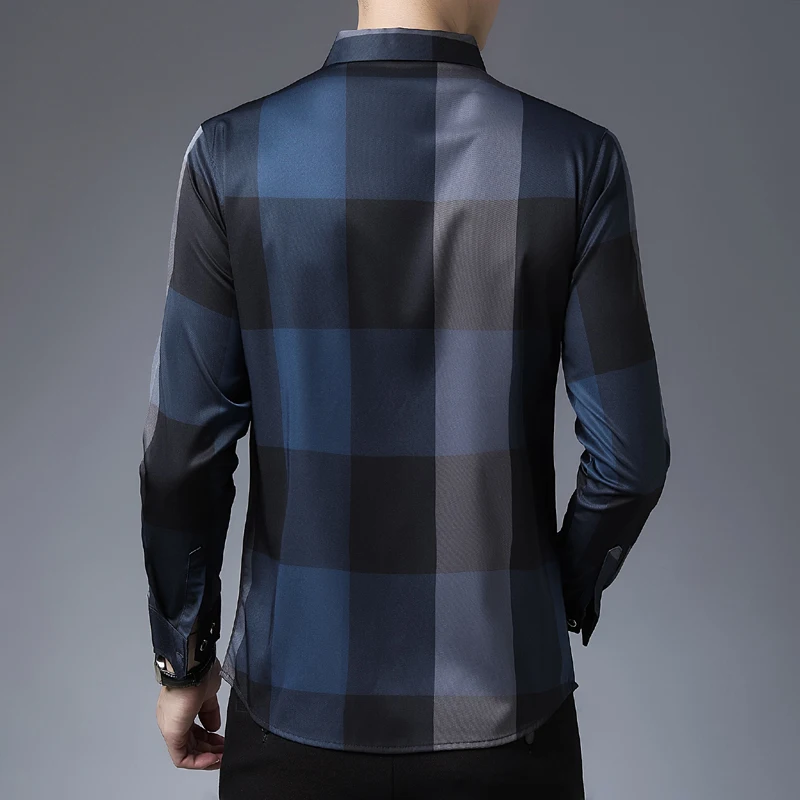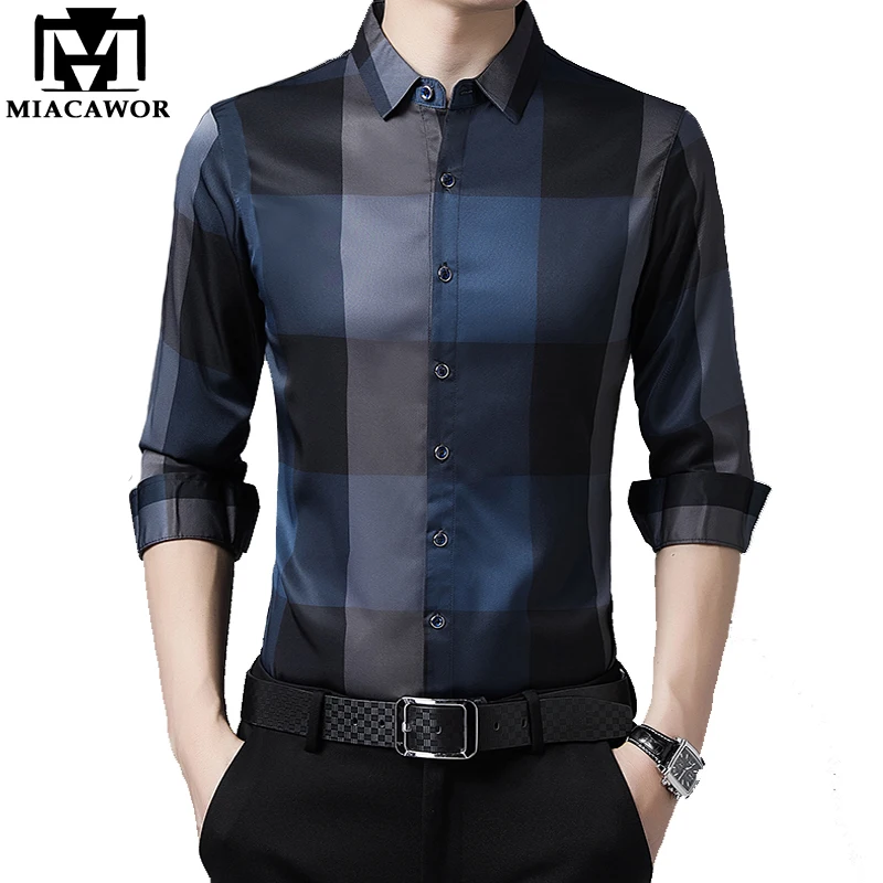 Мужская рубашка MIACAWOR, приталенная рубашка с длинным рукавом, в клетку, модель C693, размера плюс