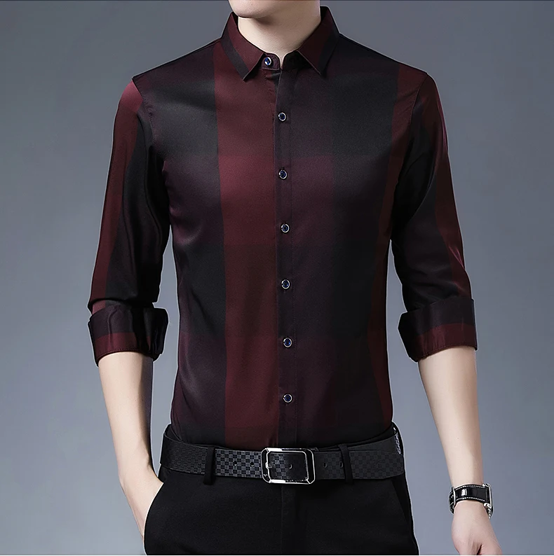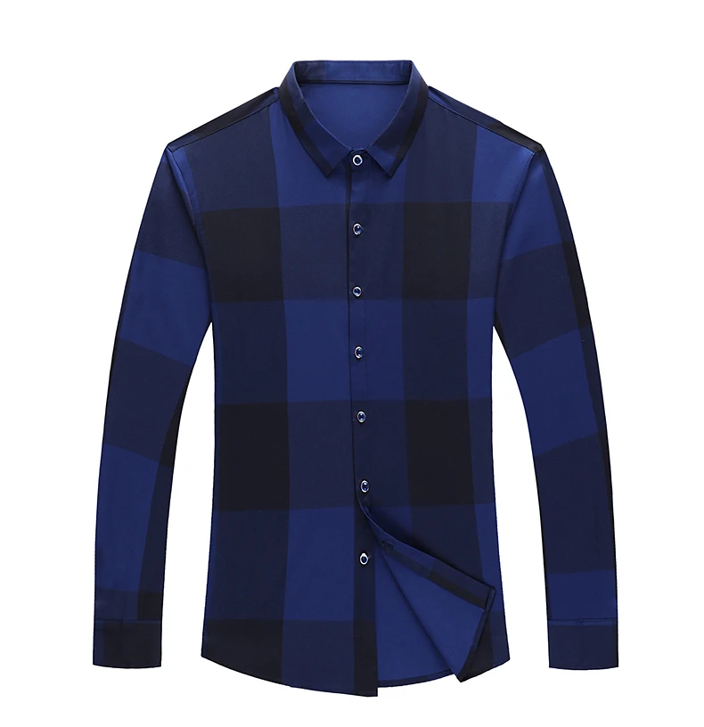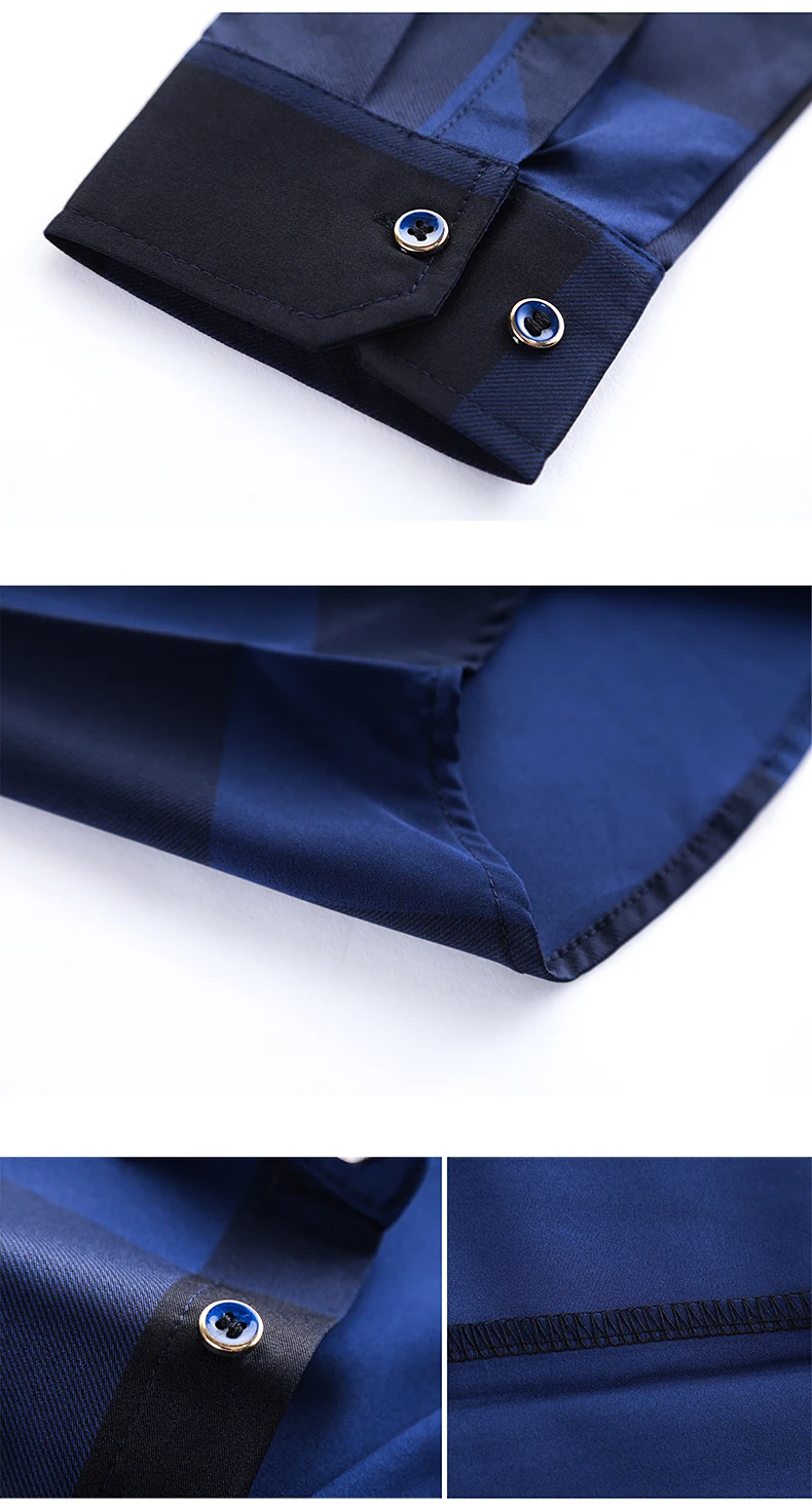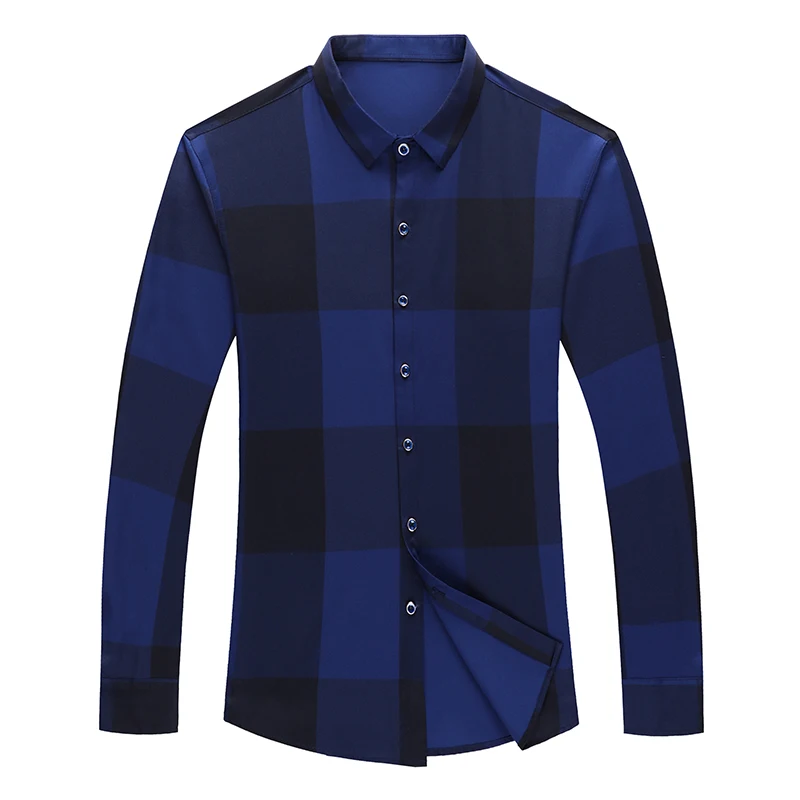 Мужская рубашка MIACAWOR, приталенная рубашка с длинным рукавом, в клетку, модель C693, размера плюс