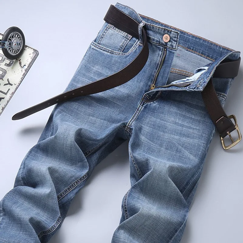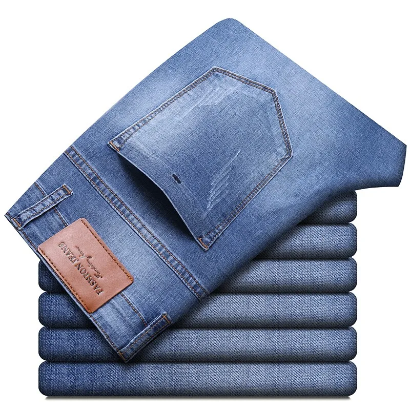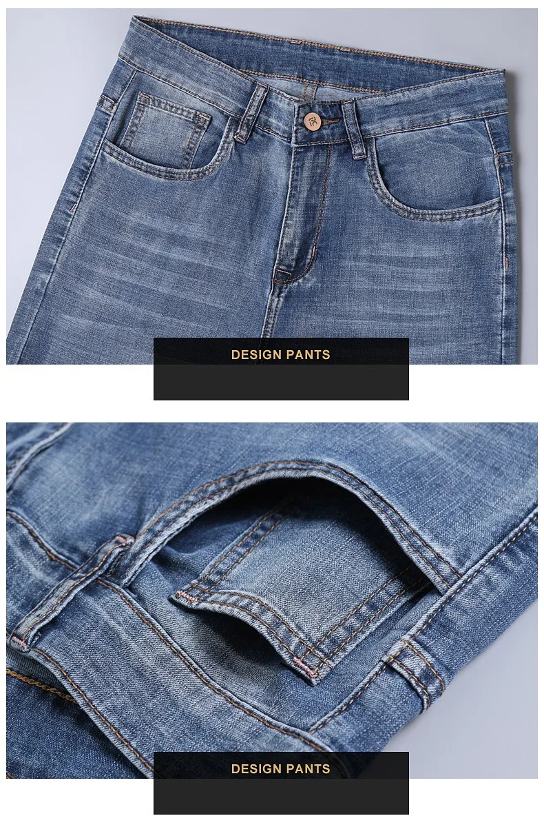 Джинсы мужские, летние, повседневные, длинные, эластичные, обтягива...