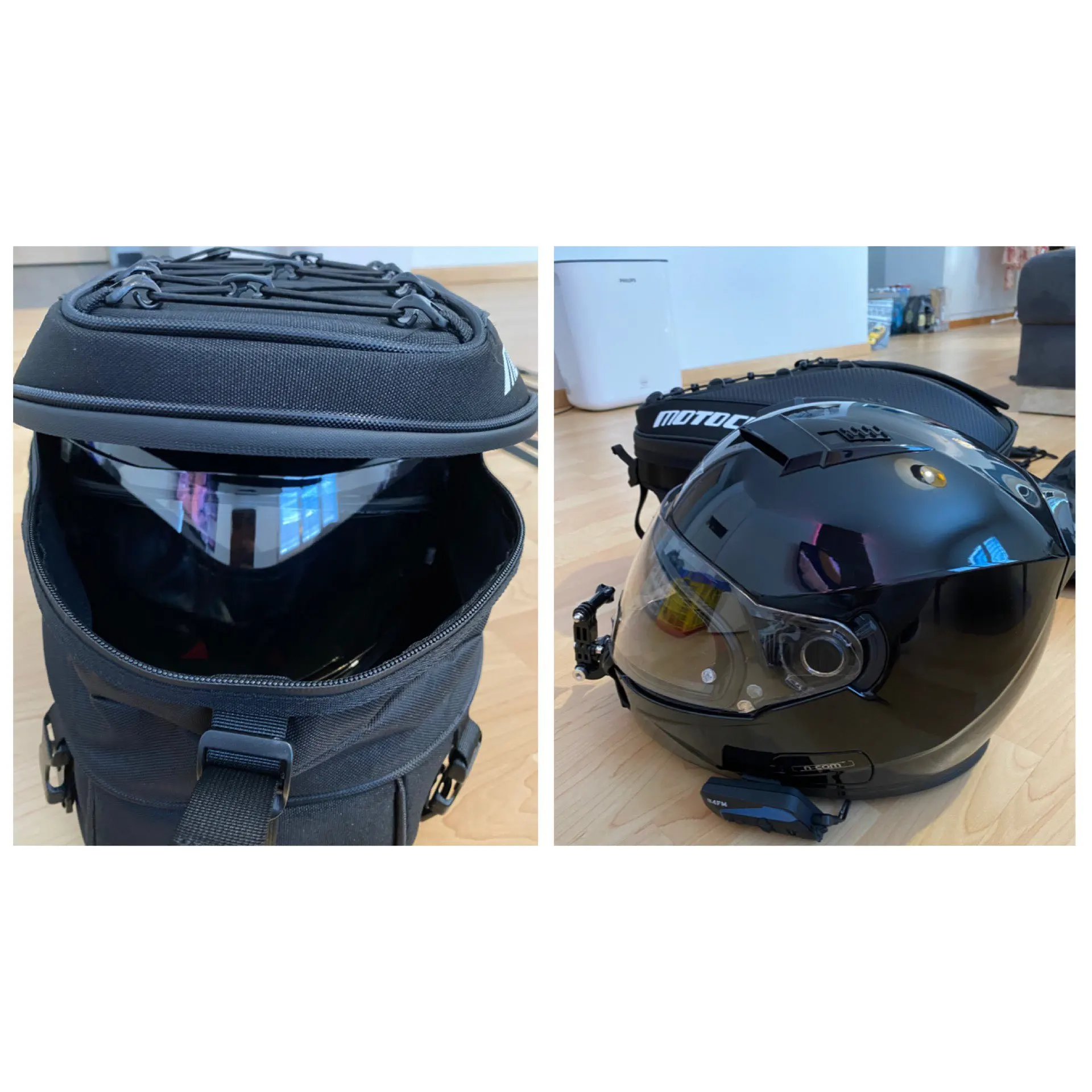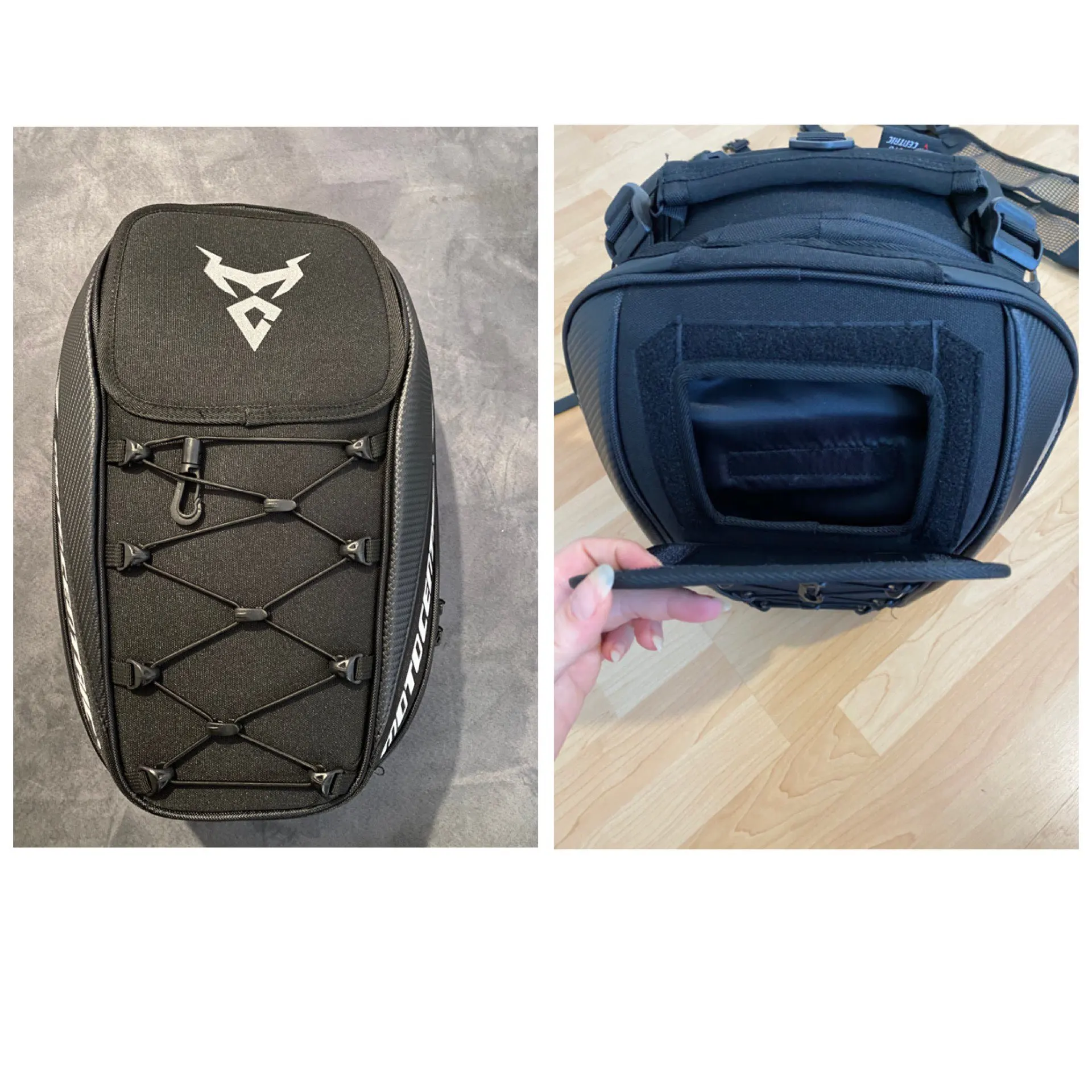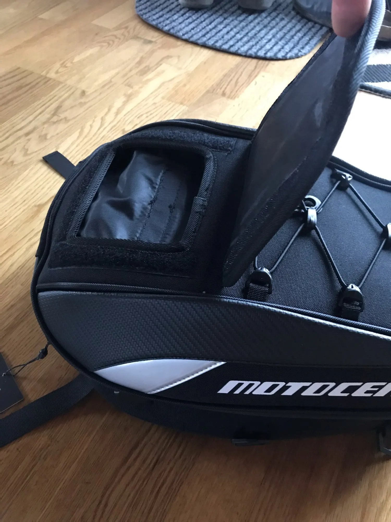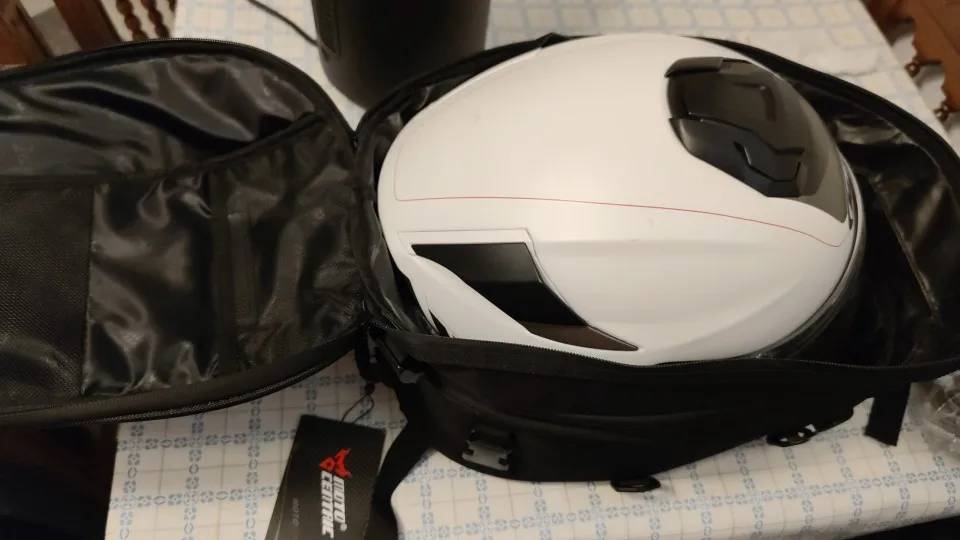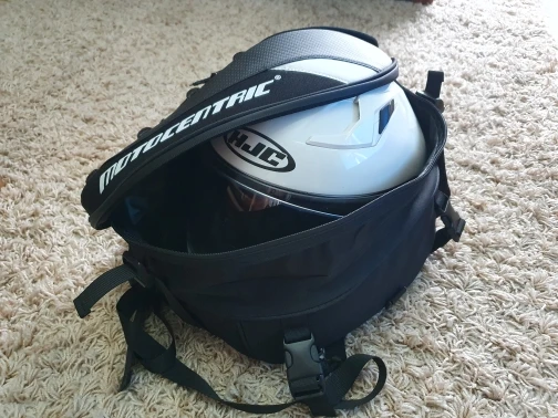 Это действительно хорошая сумка, она расширяется, чтобы соответствовать шлему и имеет хорошую водонепроницаемую молнию. Он также поставляется с защитой от дождя, ремнями на завязках и ремнями на руку, чтобы вы могли использовать его в качестве рюкзака. Мне нравится быстрый доступ липучки для карт и т. Д. Доставка была супер быстрой, менее двух недель я думаю!