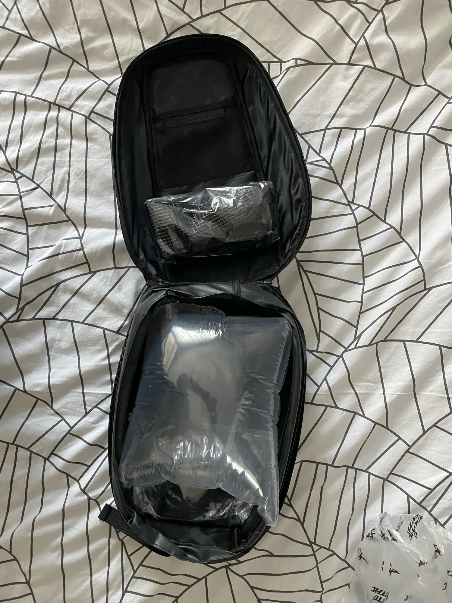 Шик! Блеск! Красота! И так, посылку заказала 22.01.2021 пришло 01.02.2021. В эту сумку действительно влезает шлем, и даже ещё остаётся место. В наборе чехол на сумку, ремни чтобы получился рюкзак, ремни для крепления на багажник. На спине рюкзак сидит очень удобно. В общем, вы все увидите на фото!