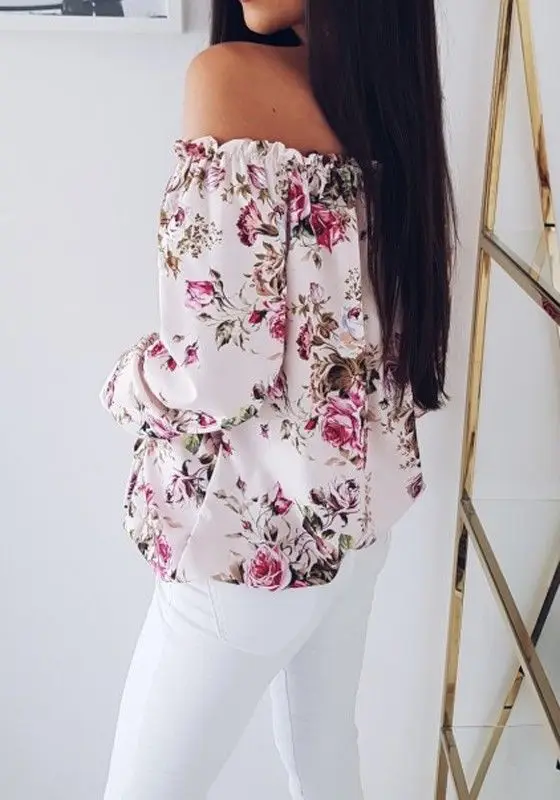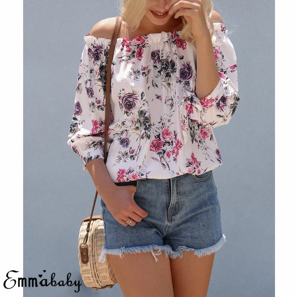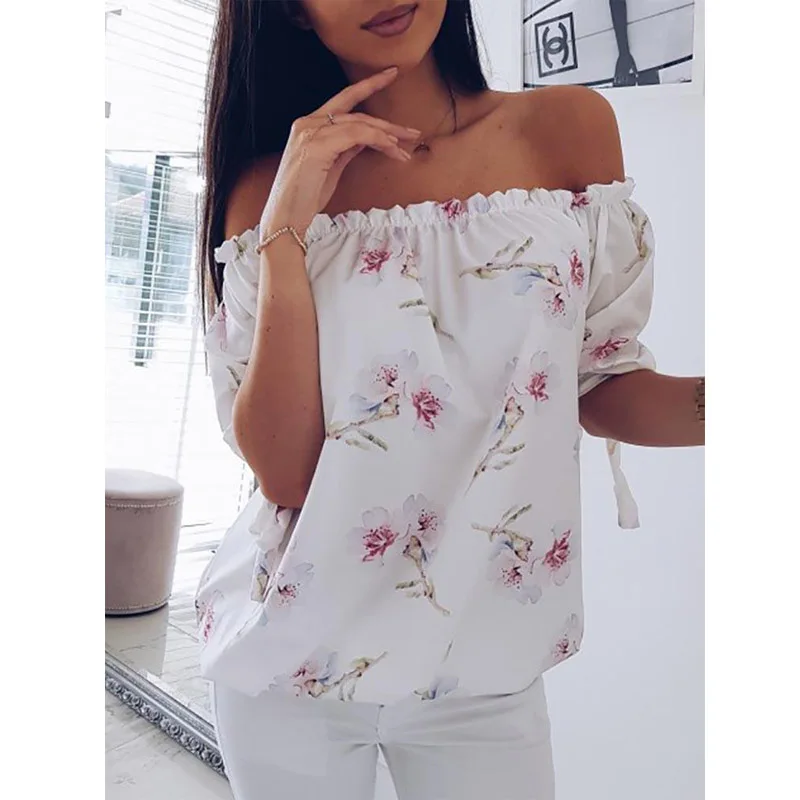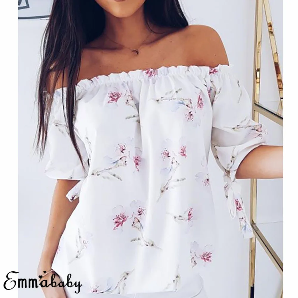 Новые популярные женские элегантные повседневные свободные топы, женские футболки с принтом, модная сексуальная блузка с открытыми плечами, рубашки