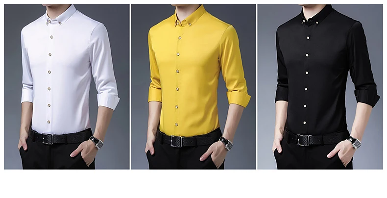 Мужская рубашка MIACAWOR, приталенная рубашка с длинным рукавом, в ...