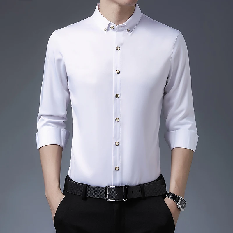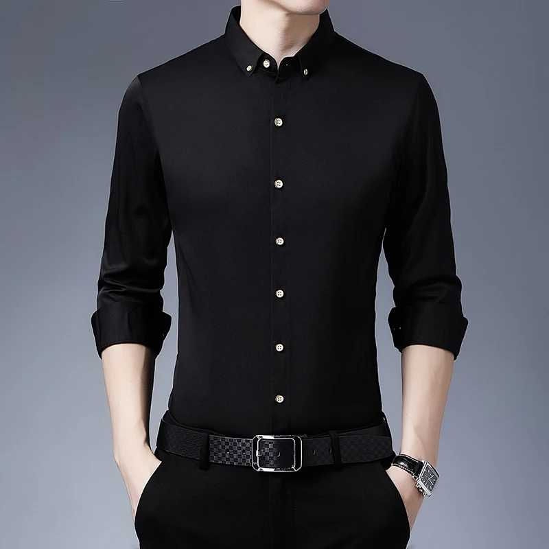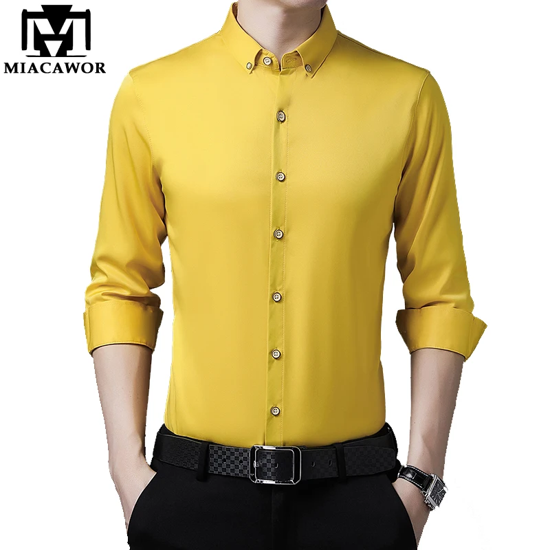 Рубашка MIACAWOR мужская с длинным рукавом, шелковая Классическая п...