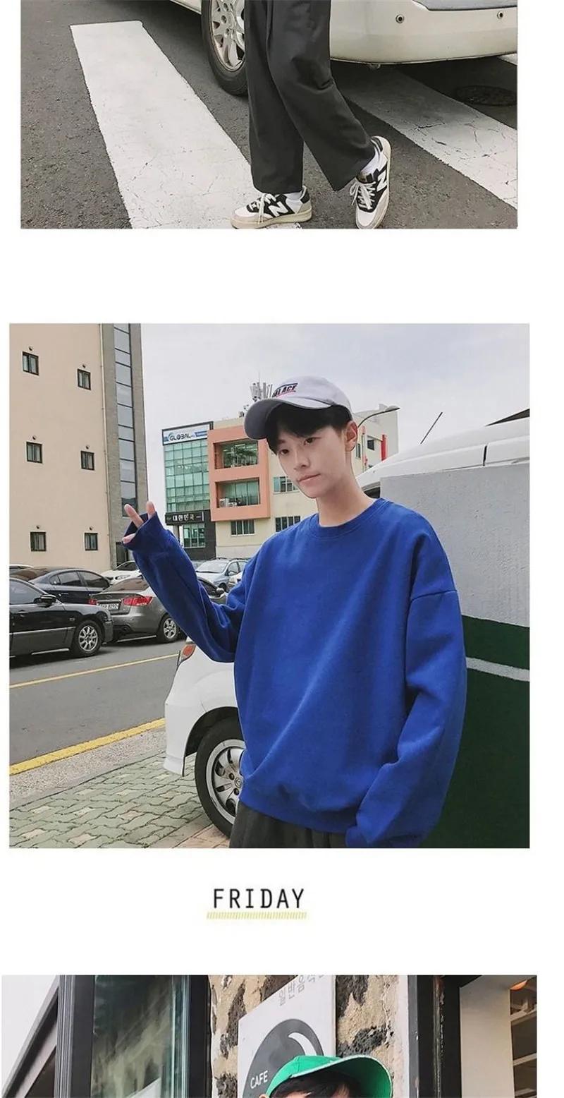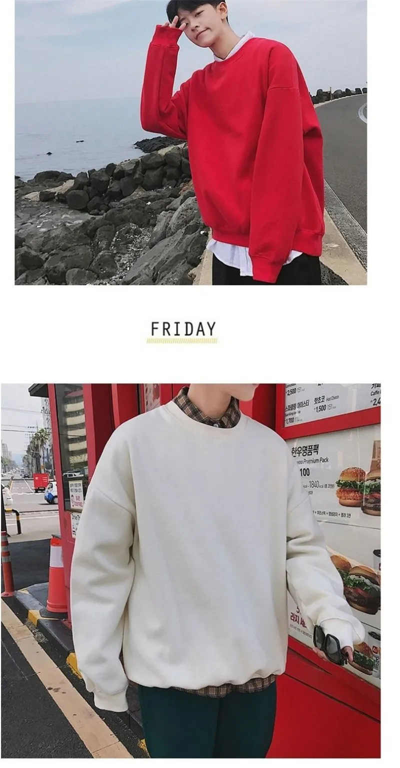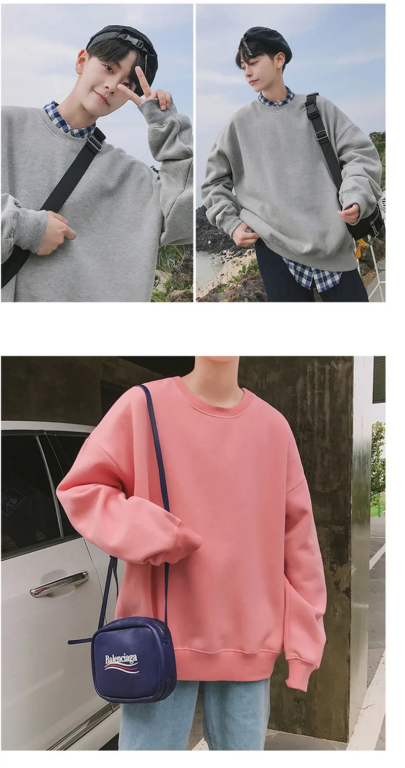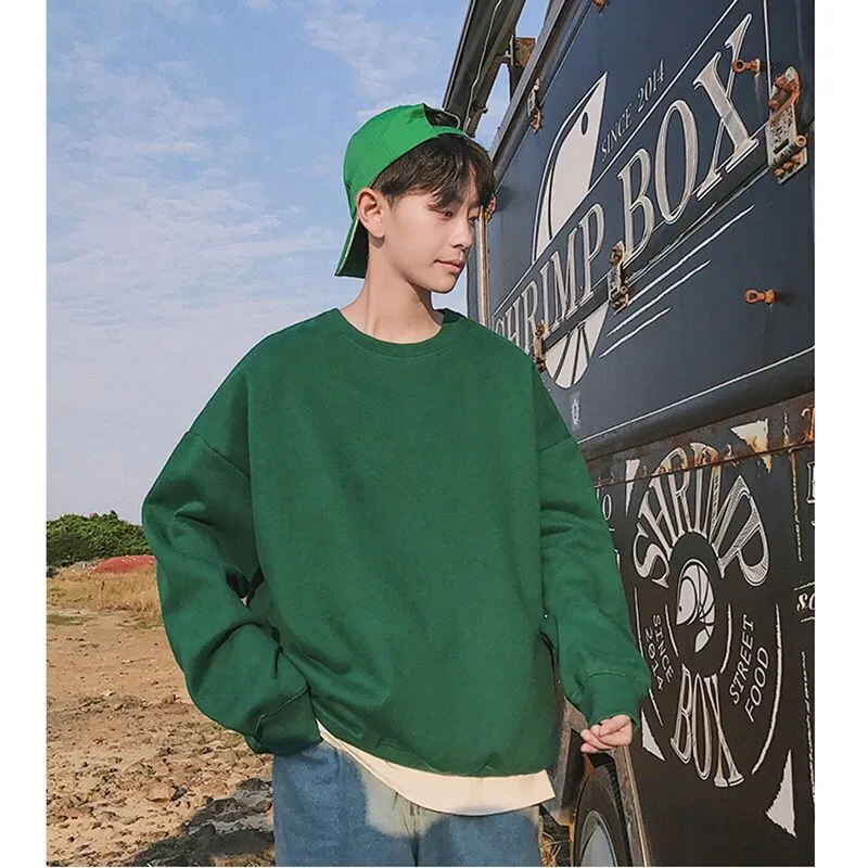 Однотонная парная толстовка с круглым вырезом, Свитшот оверсайз 202...