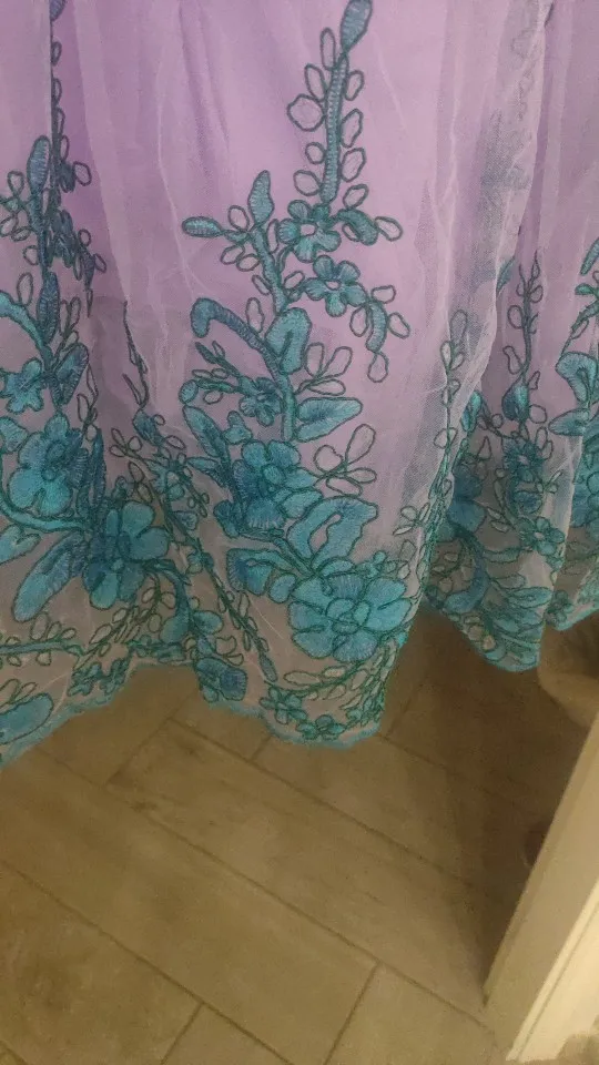 Цвет не как изображено для этого платья. Я купила 7-8 платьев для своей дочери, и это было самым дорогим от Alie и самым дальным от фотографии. Фиолетовый лук и рукава гораздо светлее лаванды. Рукава просто свисают (слишком большие), и лук должен быть закреплен на спине, но не достаточно большой, чтобы его можно было увидеть спереди любым способом. Другие цвета не текут вместе либо, и верхняя часть не очень белый, не видно через как. Мы думали, что это будет ее фаворитом, но мы не будем брать это в круиз.