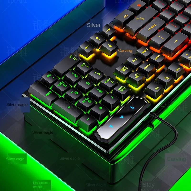 Светящаяся компьютерная игровая мышь, клавиатура, набор проводной м...