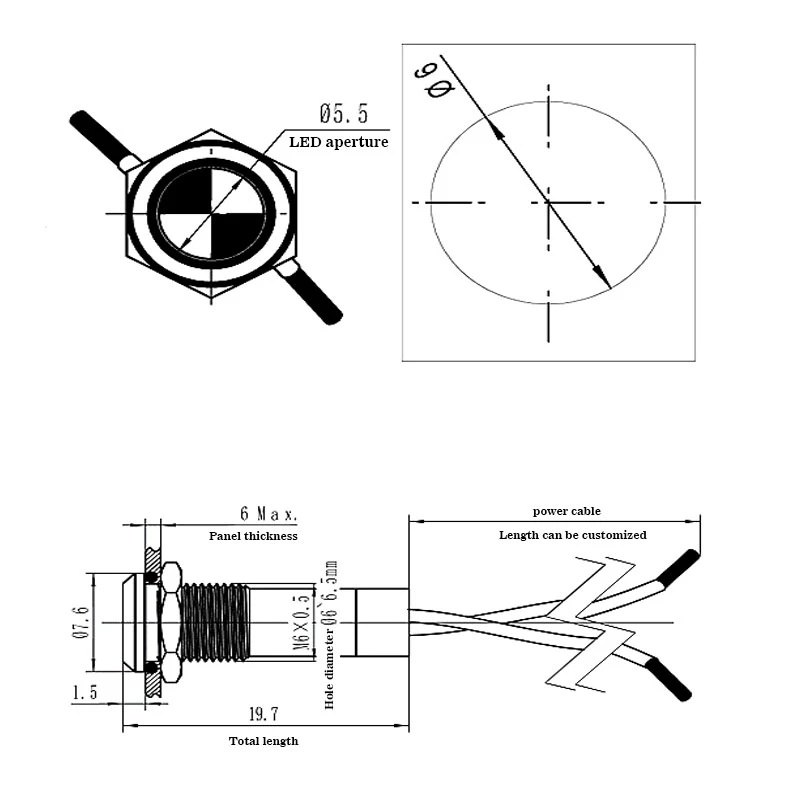 1 шт., водонепроницаемый сигнальный фонасветильник, 6 мм, 6 в, 12 В, 24 В