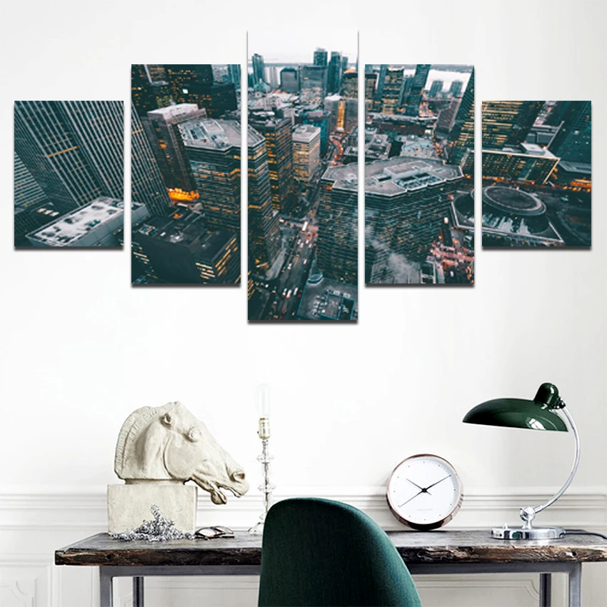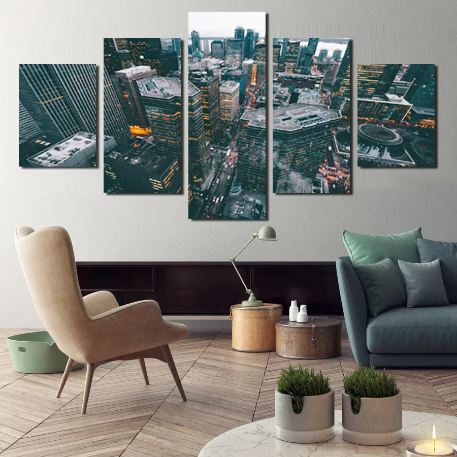 Холщовая печать, домашний декор, плакат, современный и Процветающий город, вид на высоту, здание, пейзаж, бескаркасная живопись