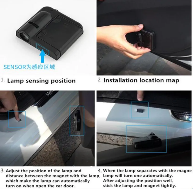 Пуля точка: 1. Этот продукт предназначен для любителей модификации автомобиля, что приносит больше удовольствия от вождения для водителя. 2. Конструкция магнитного датчика: он загорится, когда дверь открывается, и закроется, когда дверь закрыта. 3. Простота установки: Беспроводной дизайн, клейкая паста 3M, не нужно сверлить. 4. Для всех транспортных средств, вы можете выбрать другой логотип для вашего автомобиля. 5. Лучший подарок для вас и ваших друзей. Спецификация: Размер: 6,5*6,3 см Материал корпуса: АБС-пластик Срок службы: 8-10 миллионов часов Рабочее напряжение: 4,5 V Питание: 3 * AAA батареи (не входят в комплект) Упаковочный лист 1 * автомобильный беспроводной желанный свет 1 * Инструкция