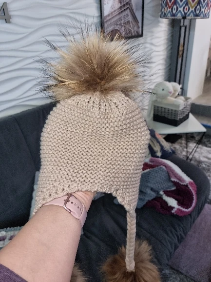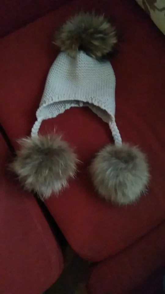Шапка понравилась, показалась тонковата и цвет сначала заказала бежевый потом поменяли на серый, по мне темноват, гразноват оттенок. Взяла изза длиных бомбонов натуральный мех енот