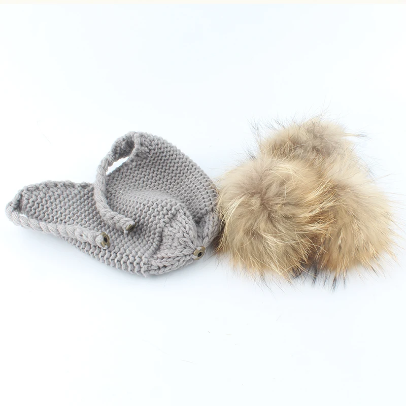Детские вязаные шапки с помпоном из натурального меха, зимние теплые шапки для детей, шапки с помпонами из натурального меха