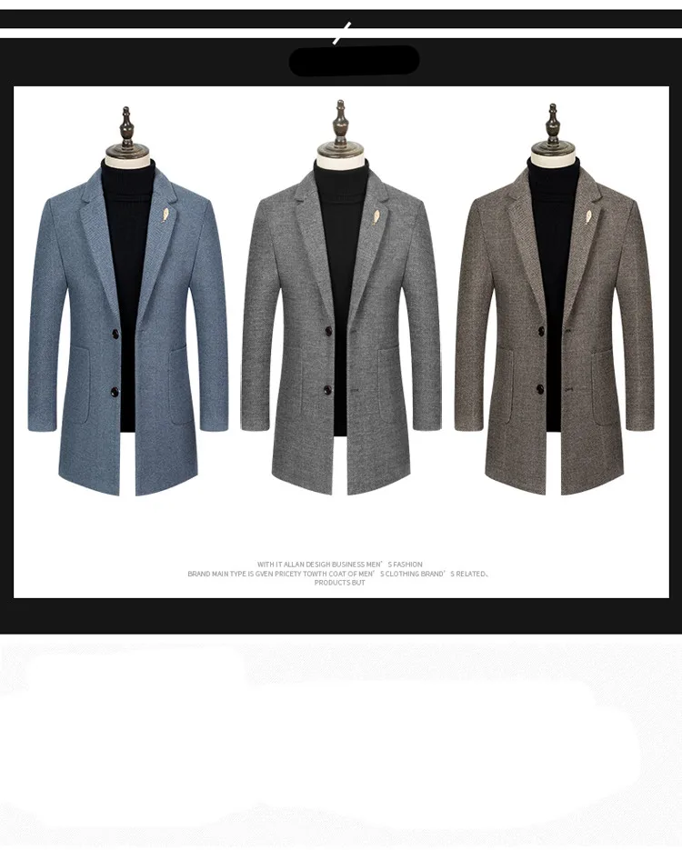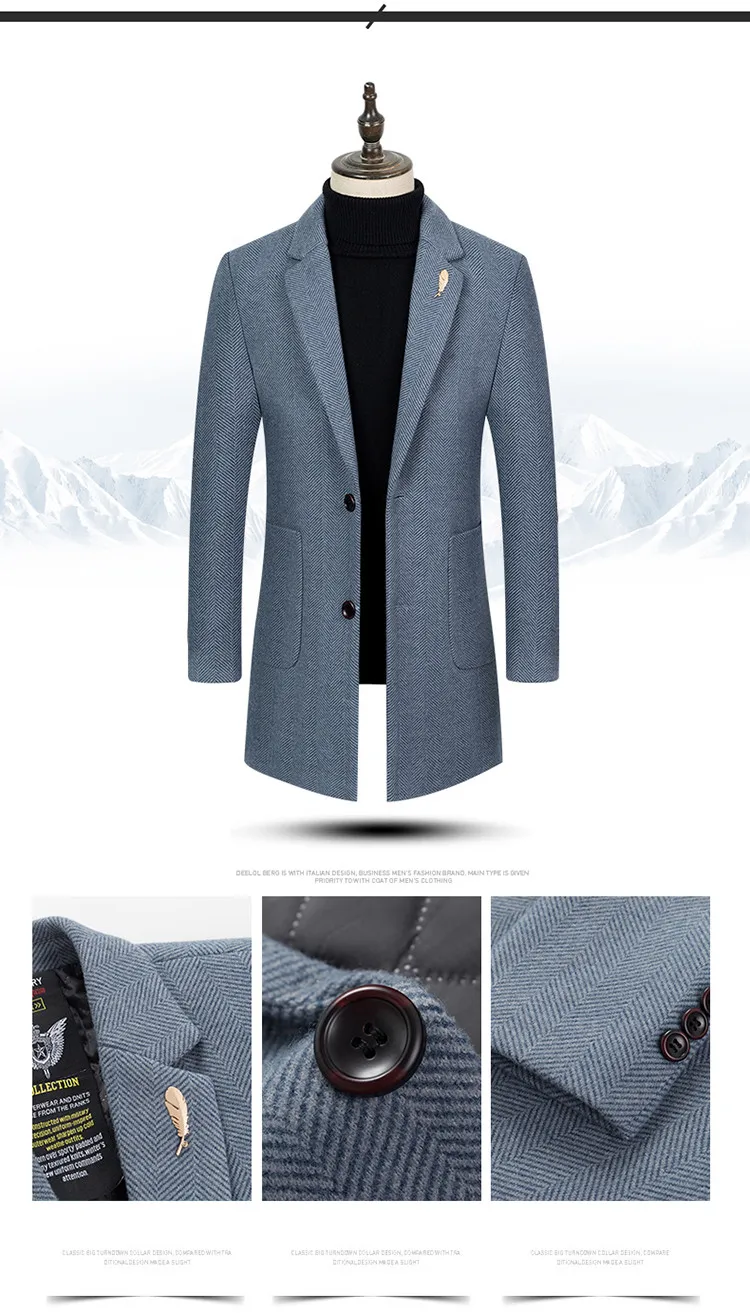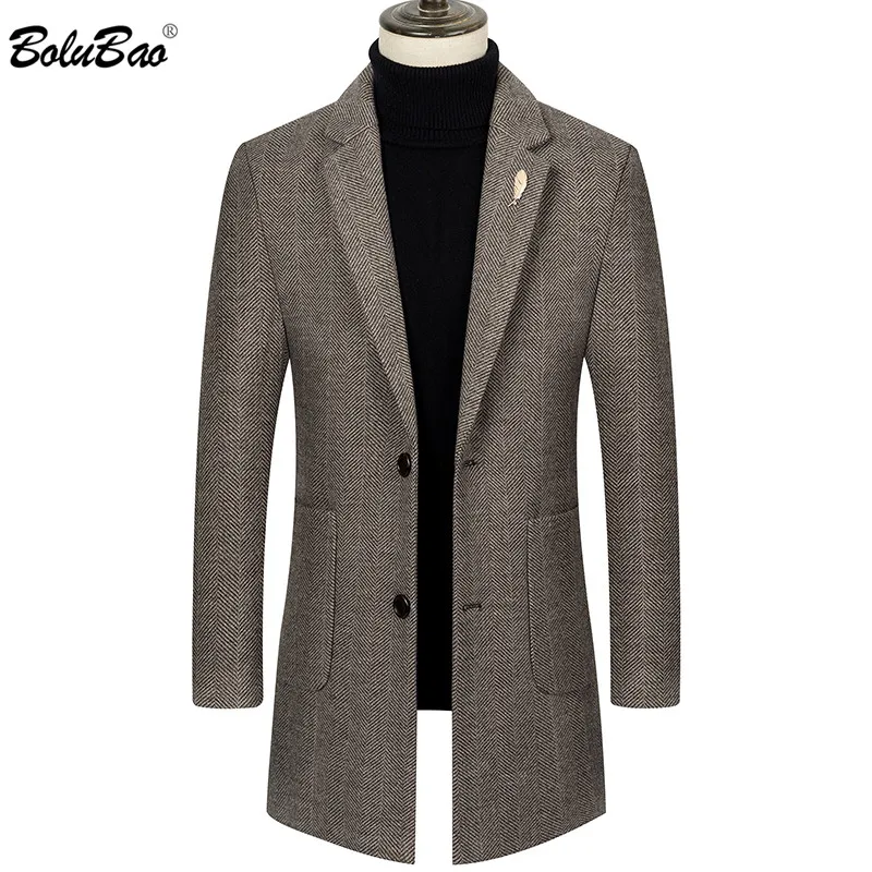 Пальто мужское из смесовой шерсти BOLUBAO, длинное, повседневное
