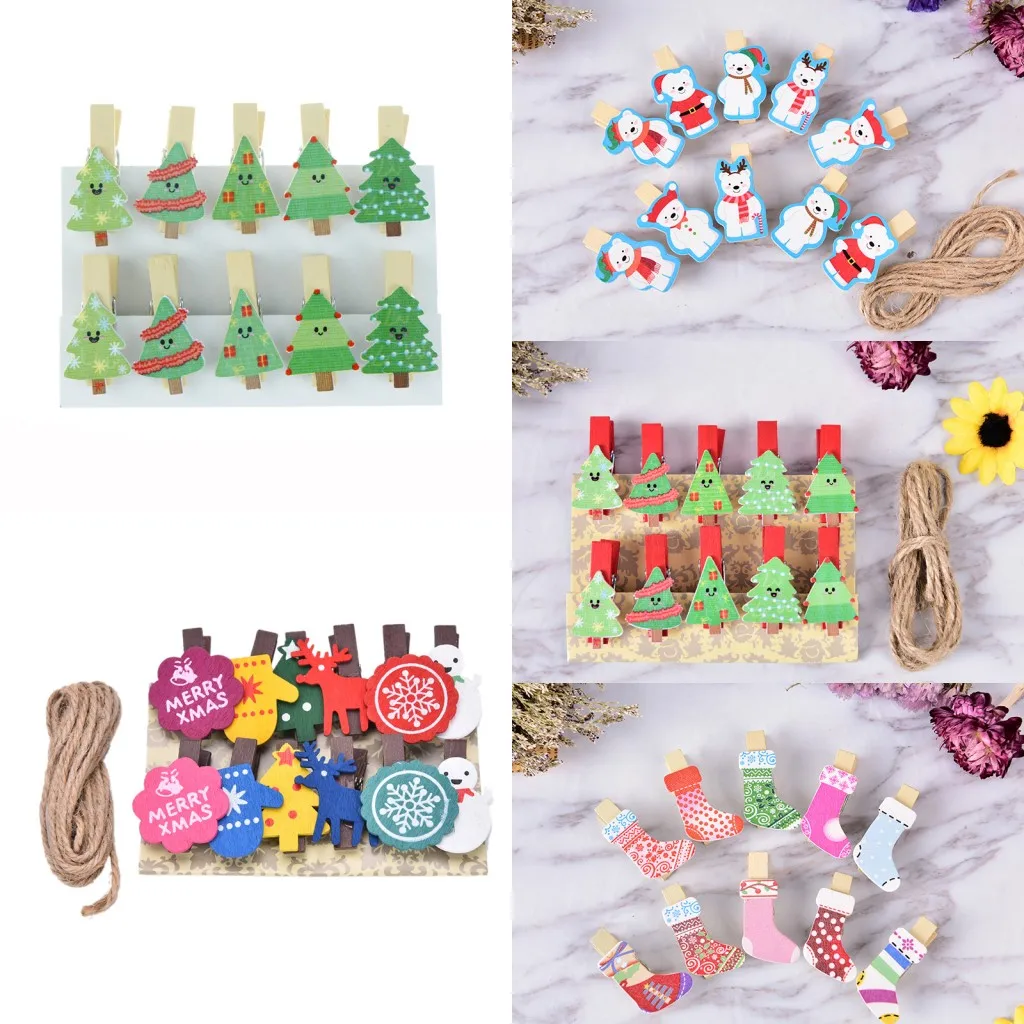 12 шт. пеньковая веревка Рождественский зажим деревянные зажимы для...