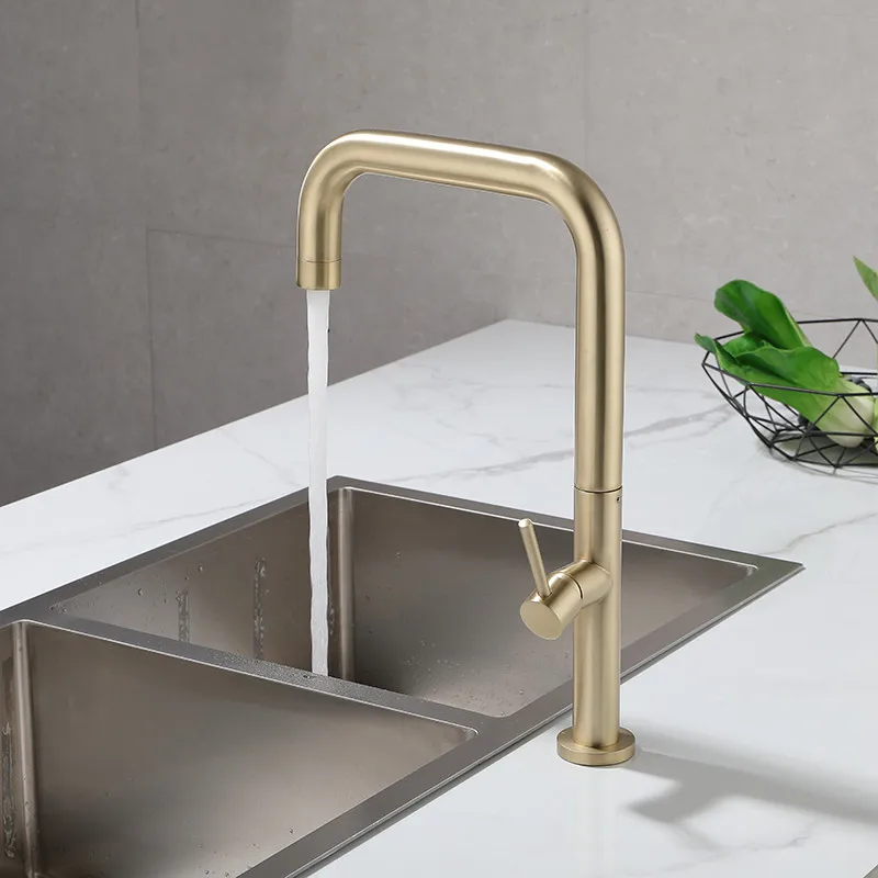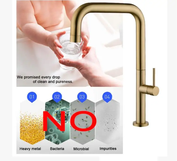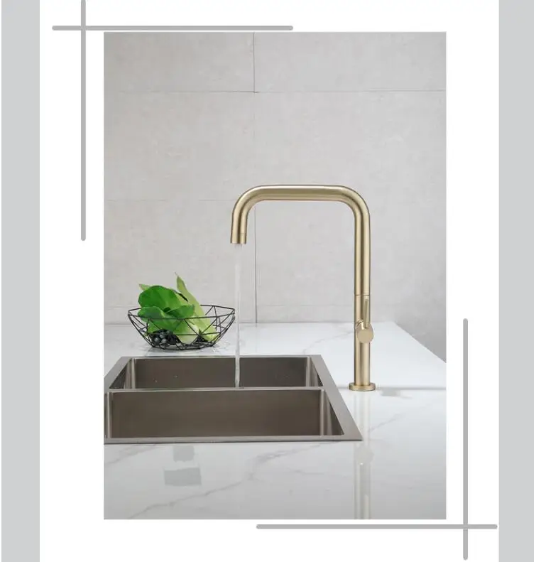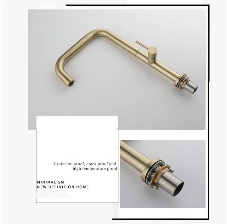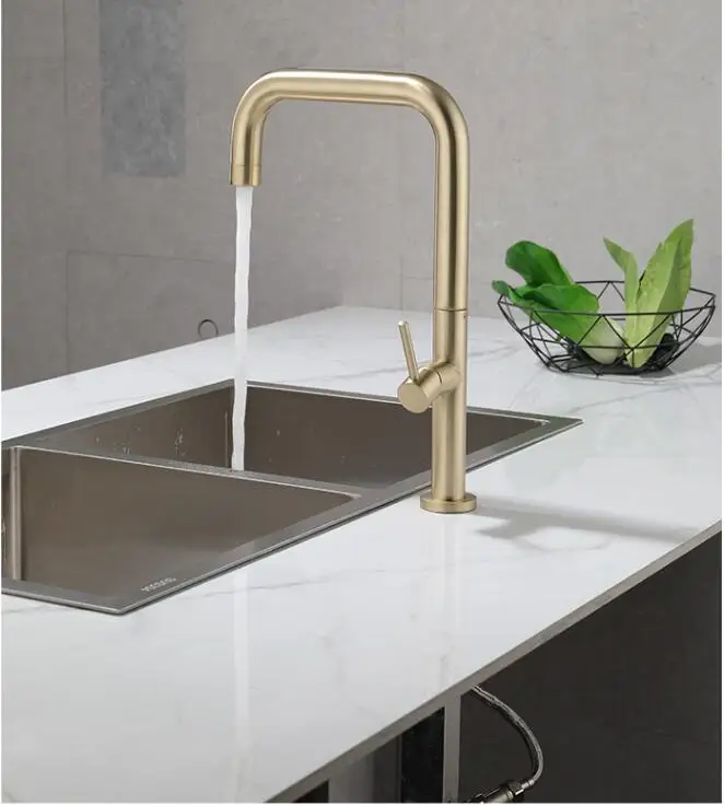 Новый кухонный кран с золотым краном для раковины, смеситель с поворотом, кухонный кран, латунный Смеситель для горячей и холодной воды, однорычажный