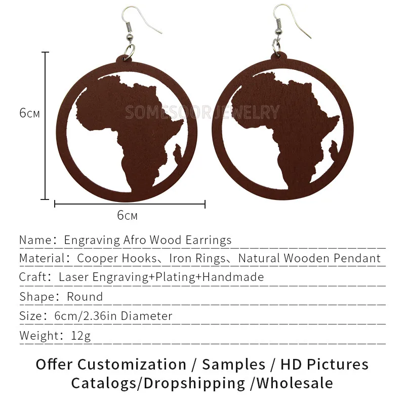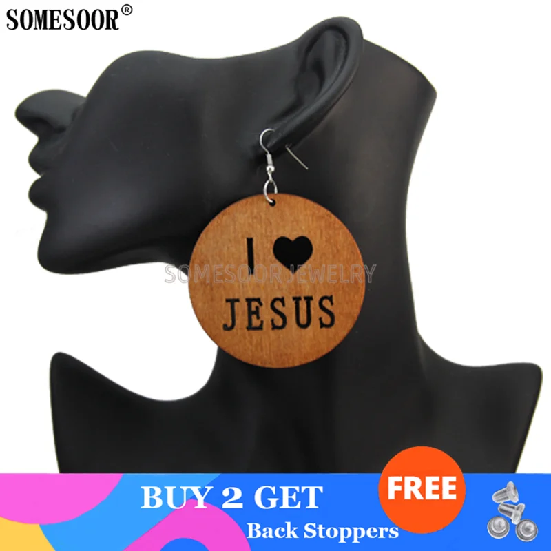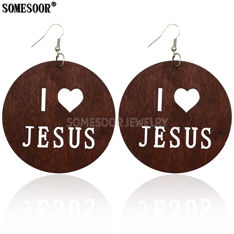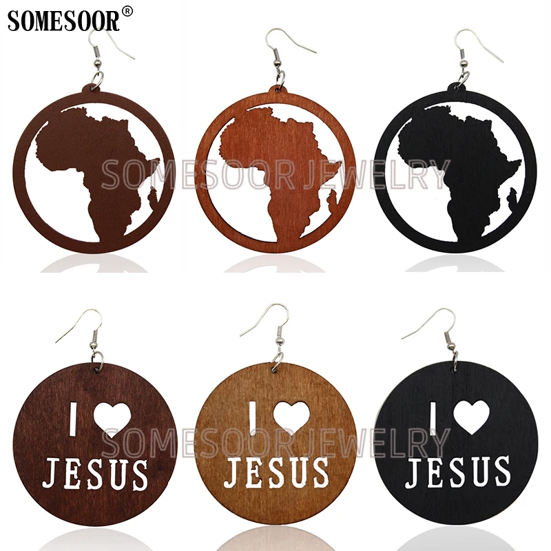 Ювелирные изделия SOMESOOR, лазерная резка, Африканская Карта, форма Я люблю Иисуса, модные деревянные висячие серьги для женщин, подарки, оптовая продажа