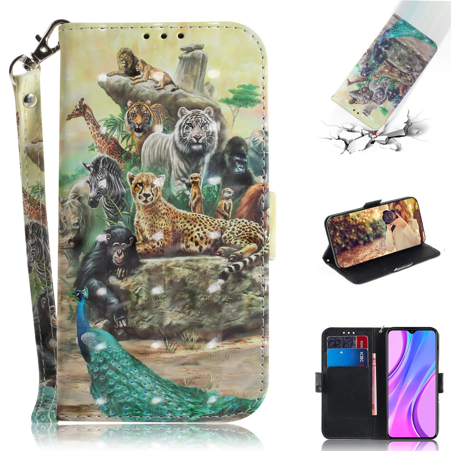 Чехол с 3D рисунком животных для Xiaomi Redmi 9 9A 9C, кожаный чехо...
