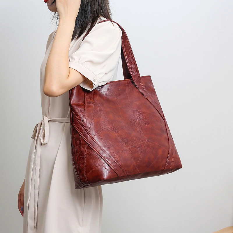 Женские кожаные сумки, новинка 2020, Высококачественная женская мягкая кожаная сумка через плечо, Повседневная Сумка-тоут в стиле ретро