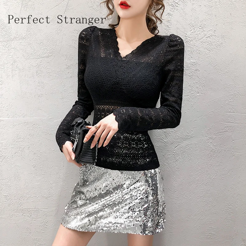 Женская шифоновая футболка с длинным рукавом и V-образным вырезом, осень 2020
