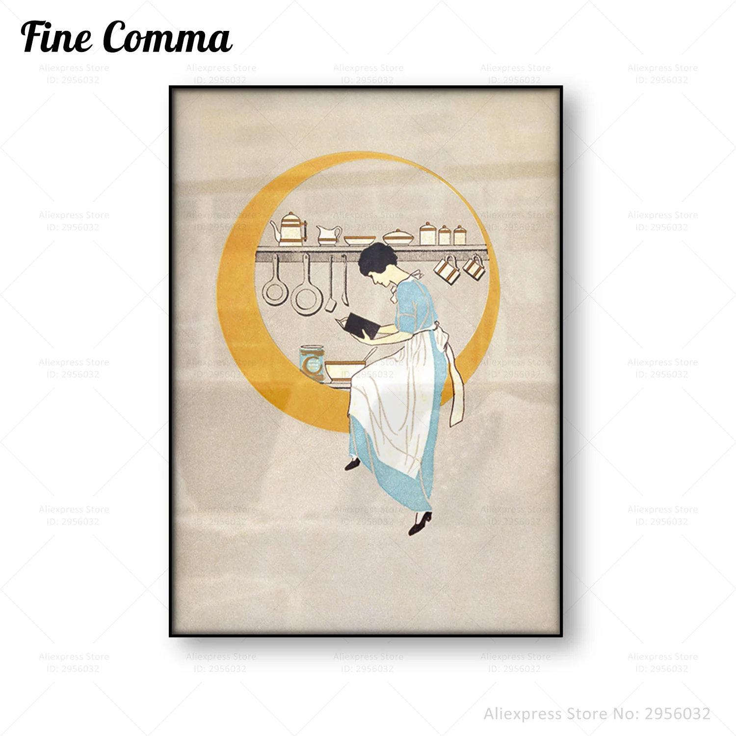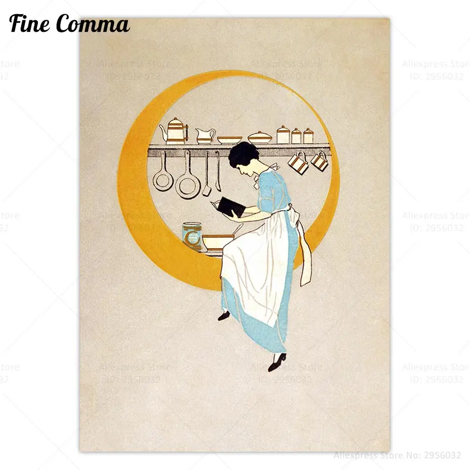 ВИНТАЖНЫЙ ПЛАКАТ, кухонная настенная Печать на холсте, женщина в Луне, ретро искусство, леди, живопись, готовка, фермерский декор, полумесяц