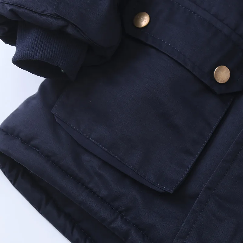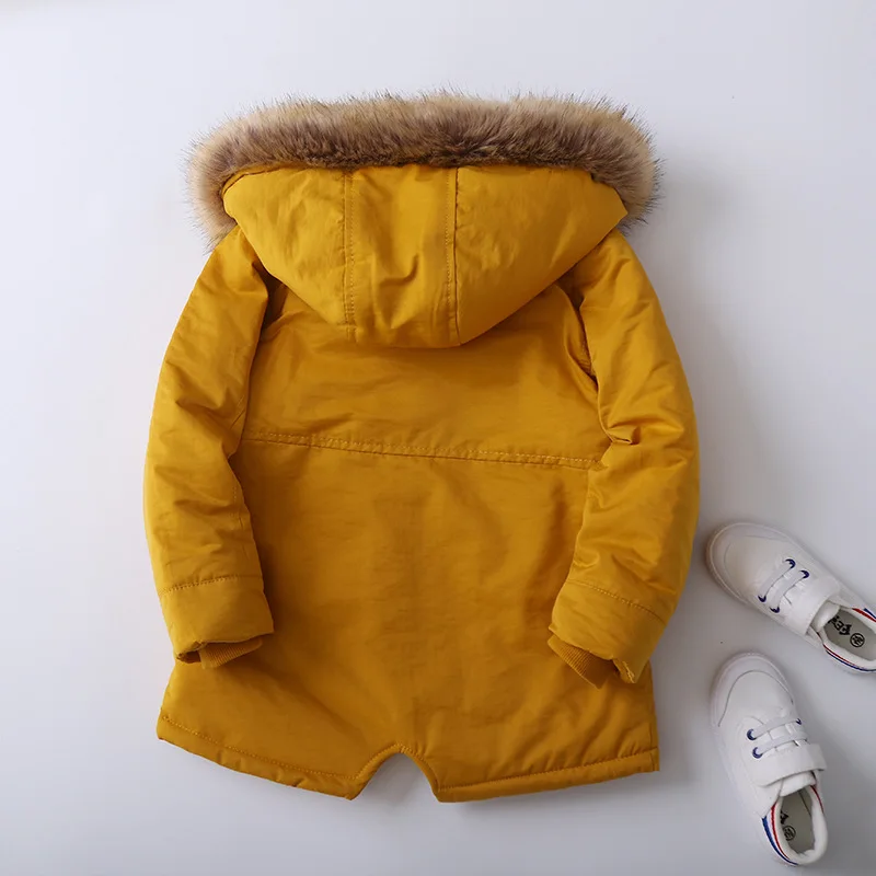 Детская одежда с капюшоном, хлопковая стеганая Одежда для мальчиков с плюшевой подкладкой, утепленная хлопковая куртка для мальчиков средней длины с плюшевой талией