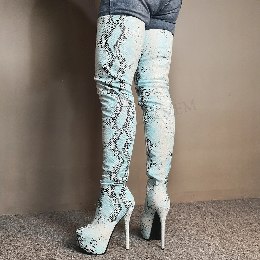SEIIHEM/женские сапоги на высокой платформе с шаговым швом; Вечерние сапоги до бедра со змеиным принтом и боковой молнией; Женская обувь; Размер 43, 44, 45, 46, 47, 52