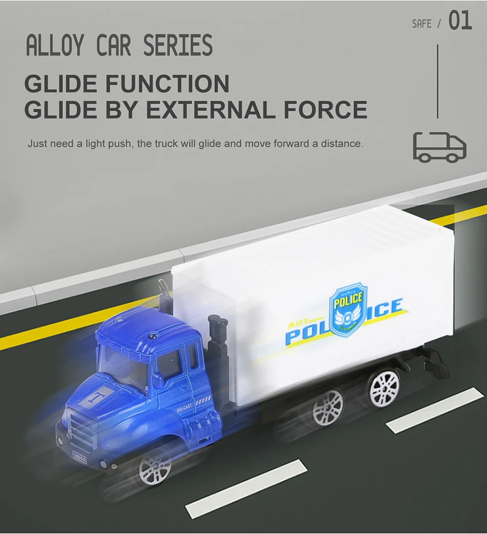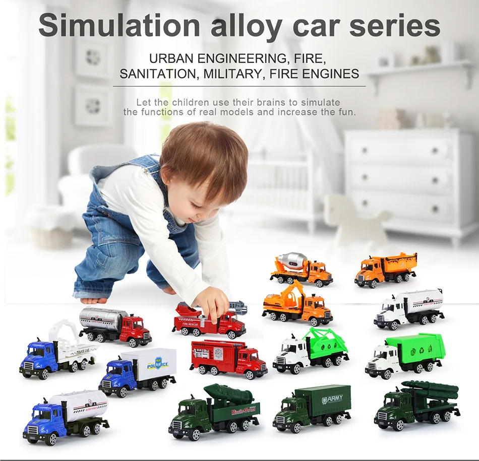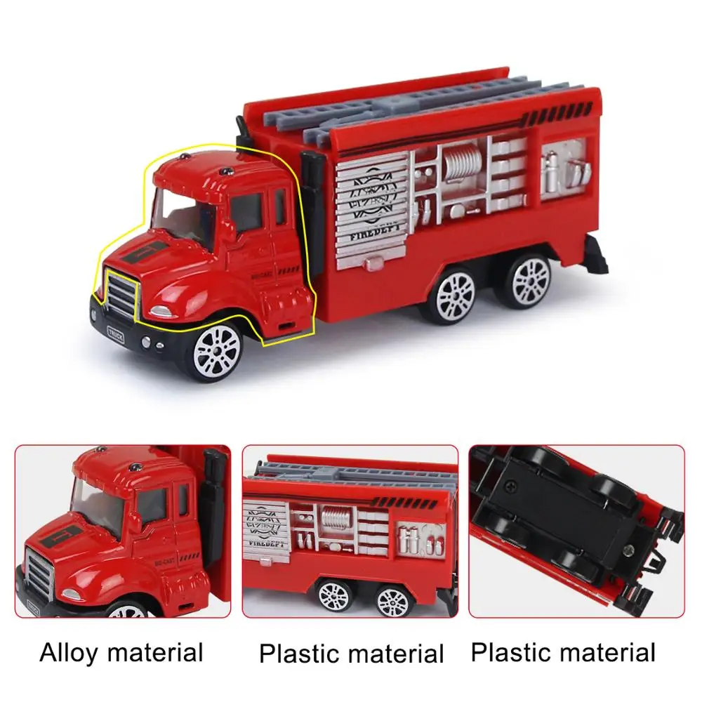 1 шт. Миниатюрная модель литая машина пожарная полиция Инженерные Грузовики дизайнерская модель скользящего автомобиля из сплава металла игрушка для мальчика подарок для детей