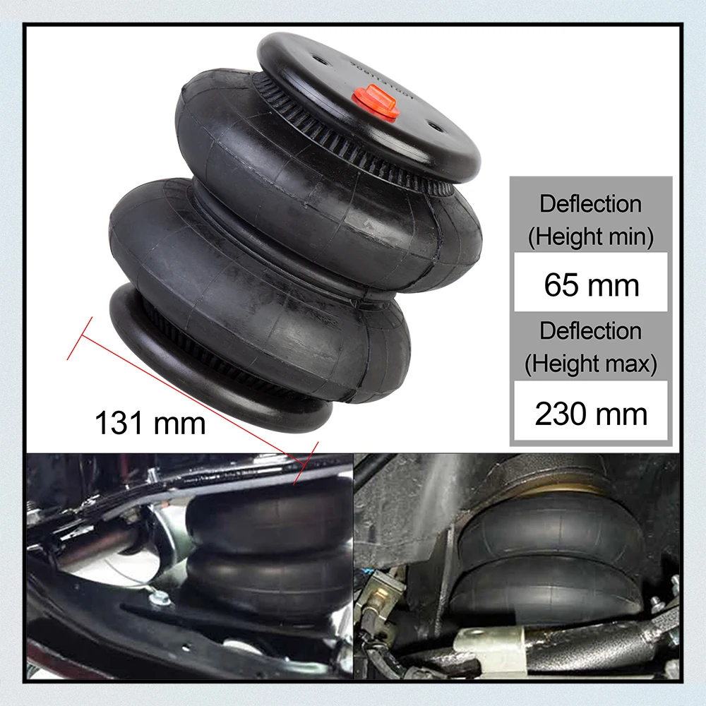 Спецификация:100% проверка качества, более отзывчивый, менее дорогой, простой в установке.Эта подушка безопасности подарит вам характеристики, которые вы хотите. С большим подъемом, более мягкой, плавной ездой и самой низкой ценой в отрасли!Тип: одиночный порт 1/2 дюйма.Верхняя застежка: 3/8 ″ - 16.Высота конструкции: 189 мм.Минимальная высота отклонения: 65 ммМинимальная высота отклонения: 230 ммЗагрузочная крышка. При 3,0 бар: 3,33 кн.Загрузочная крышка. При 7,0 бар: 9,07 кн.Пожалуйста, убедитесь, что воздушная езда подходит для вашего автомобиля. Сравните воздух