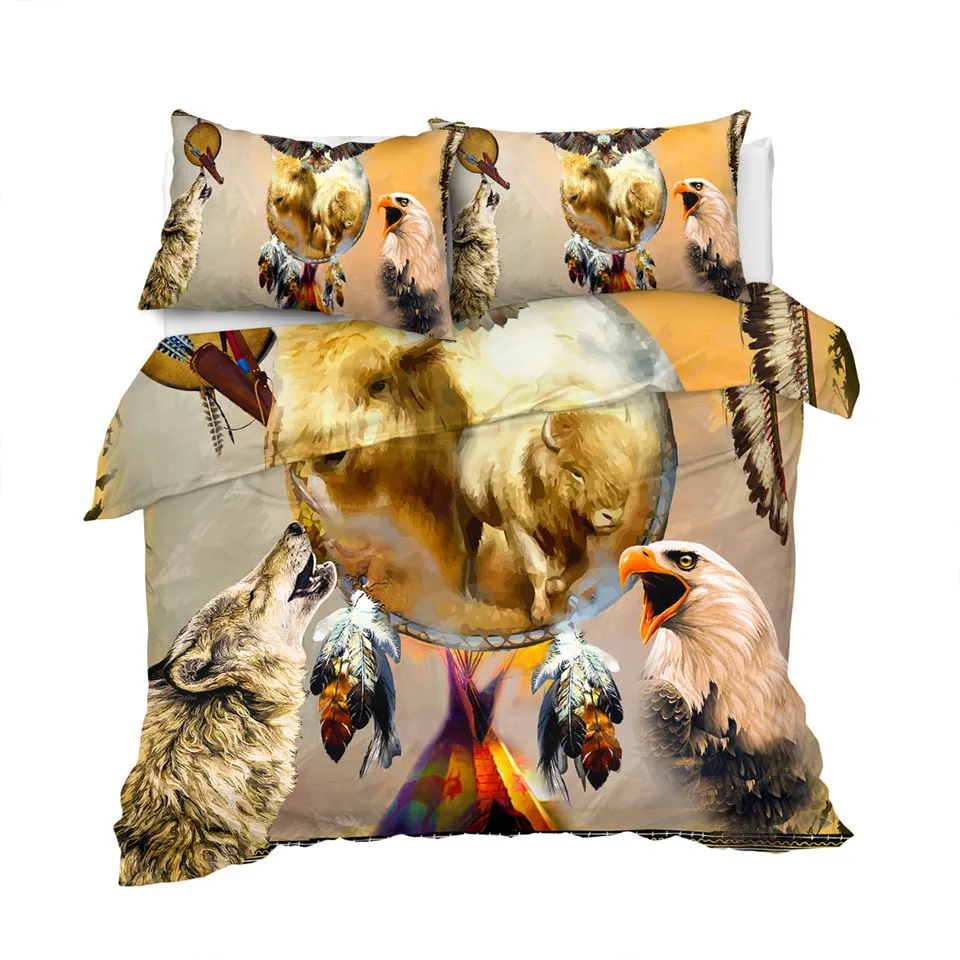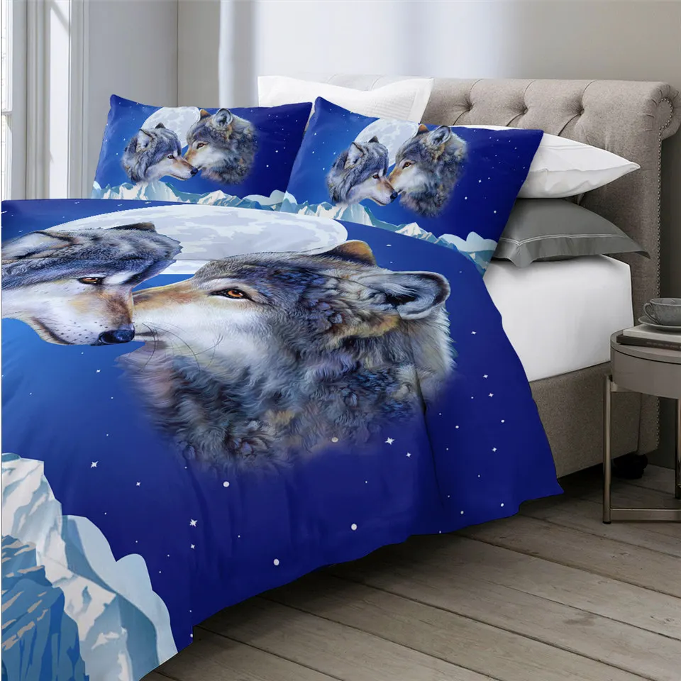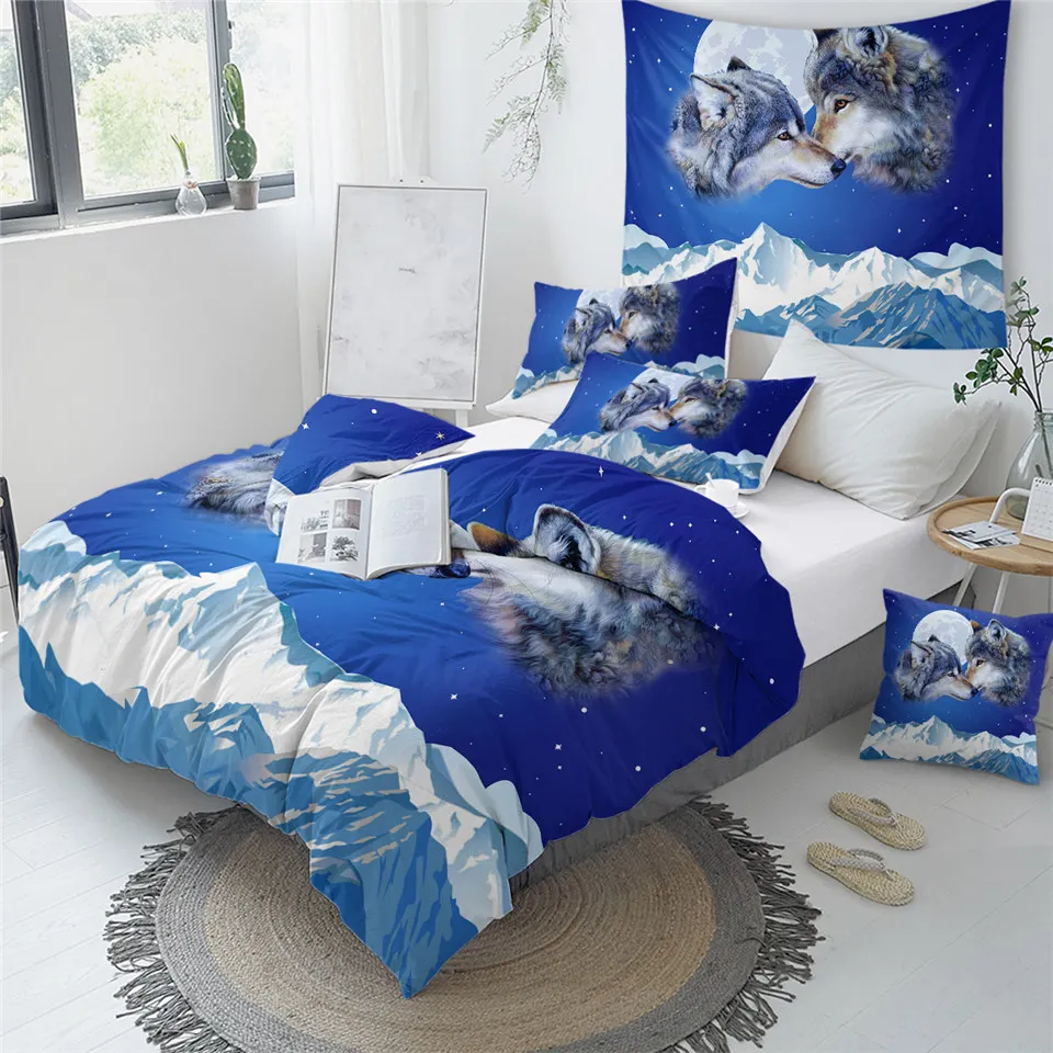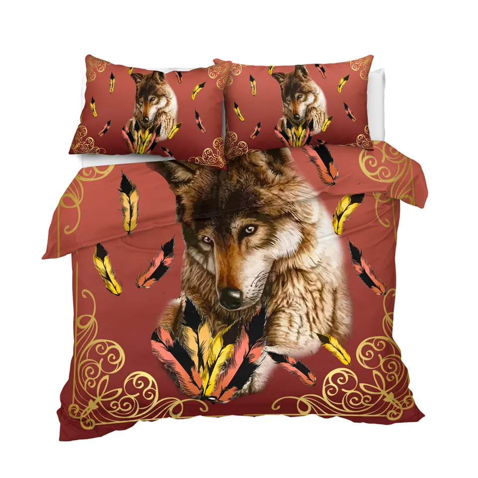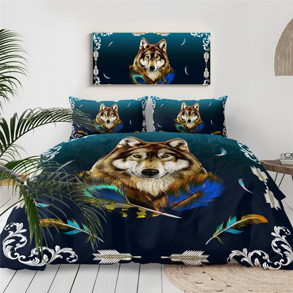 Королевский волк синий от Ismot Esha Комплект постельного белья с разноцветными перьями, пододеяльник, набор постельного белья с изображением диких животных, пододеяльник, покрывала для племени
