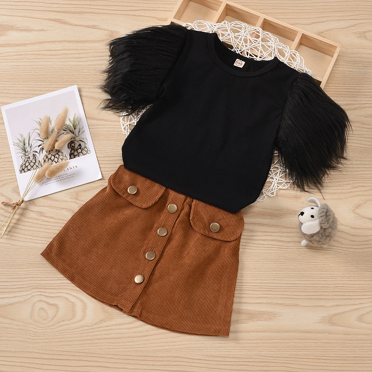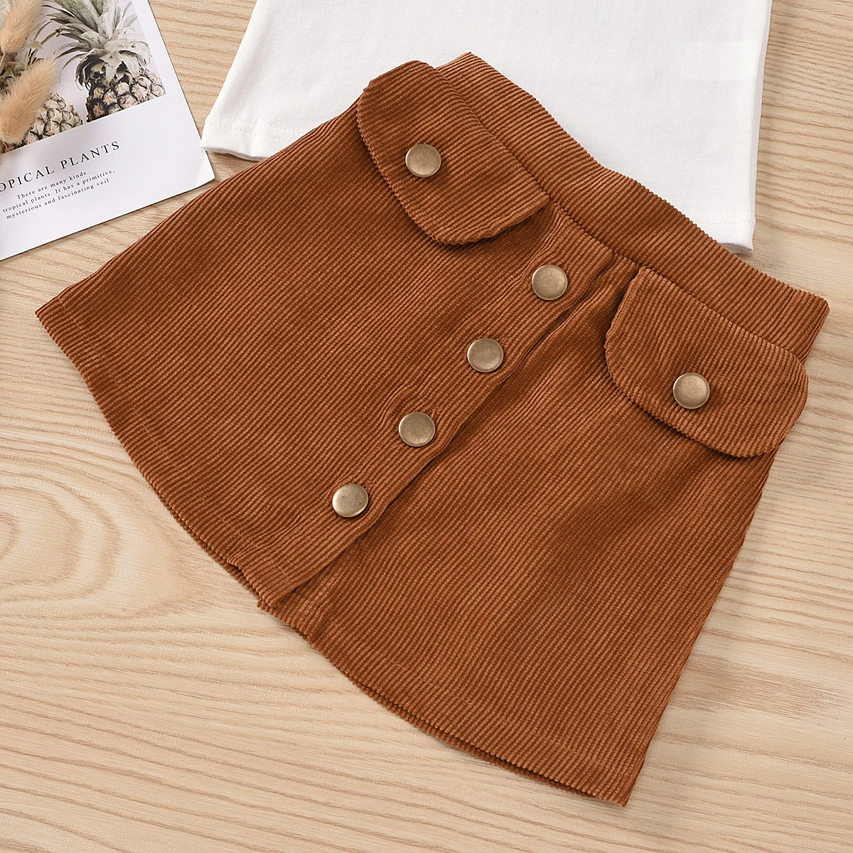 PudcocoОдежда для маленьких девочек топы с длинными рукавами и круглым вырезом, коричневая юбка на пуговицах комплекты из 2 предметов новейший модный комплект одежды