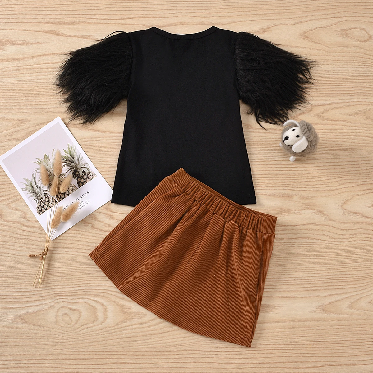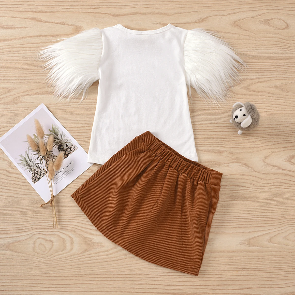 Комплект одежды для девочек 2-8 лет, топ с перьевым рукавом и кругл...
