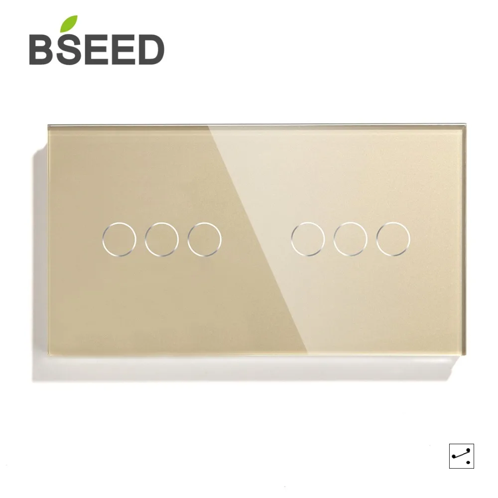 Bseed 6 Gang 1 Way 2 Way роскошный настенный сенсорный сенсор переключатель 157 мм светильник белый черный золотой кристалл Класс панель Переключатель