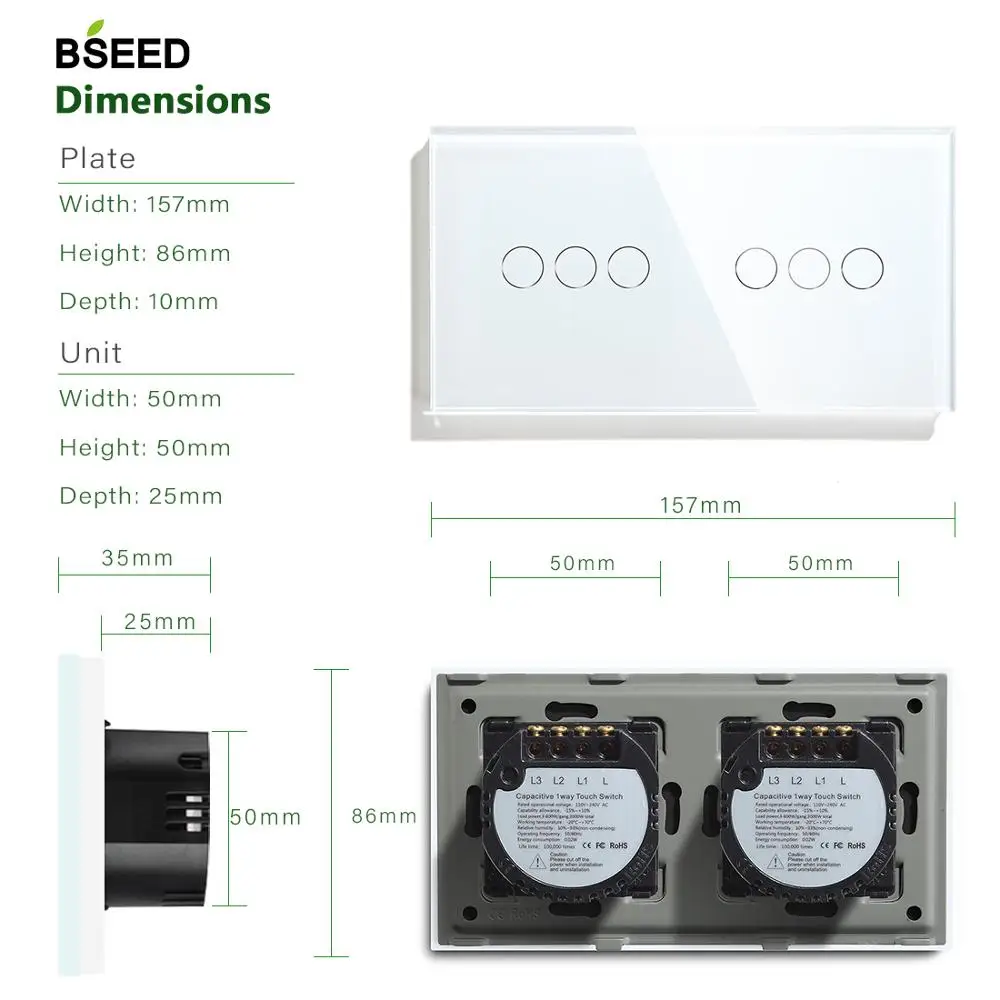 Сенсорный выключатель бренда Bseed, сенсорный переключатель с 2 кла...