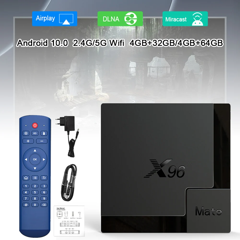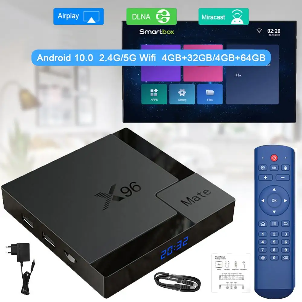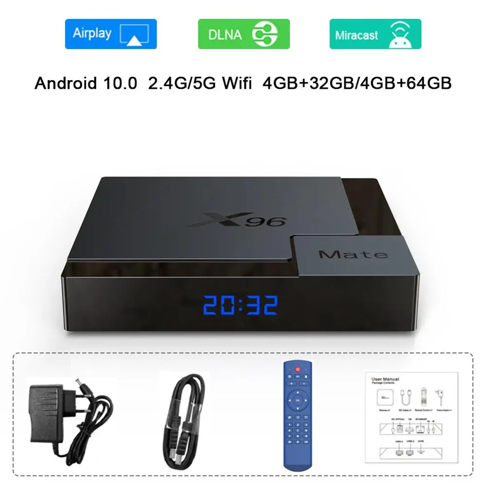 2020 Android 10,0 X96 Mate Smart TV приставка H616 четырехъядерный приставка 4 Гб ОЗУ 32 ГБ64 Гб 2,4g-5GWifi Bluetooth 5,0 4K HD медиаплеер