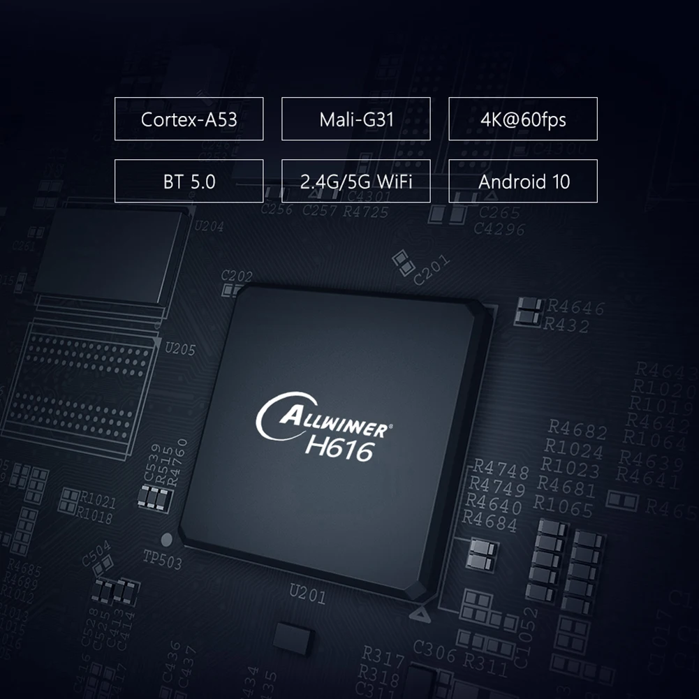 * 2. Процессор: Allwinner H616 четырехъядерный ARM Cortex A53