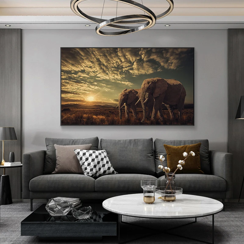 Картина на холсте с изображением двух слонов, плакаты и принты в скандинавском стиле, Настенная картина для гостиной