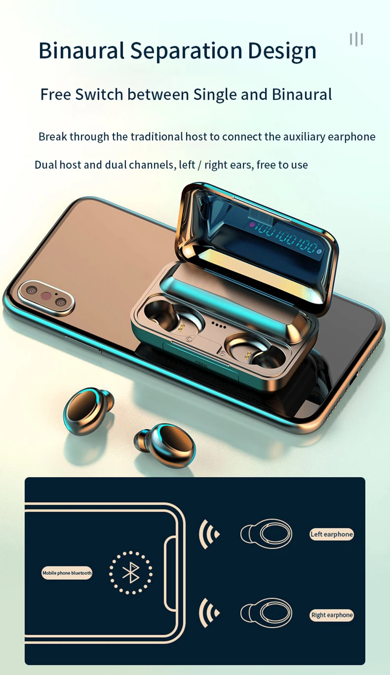 Беспроводные наушники tws F9, Bluetooth-наушники, водонепроницаемые наушники с насыщенными басами и портативным внешним аккумулятором с микрофоном, гарнитура
