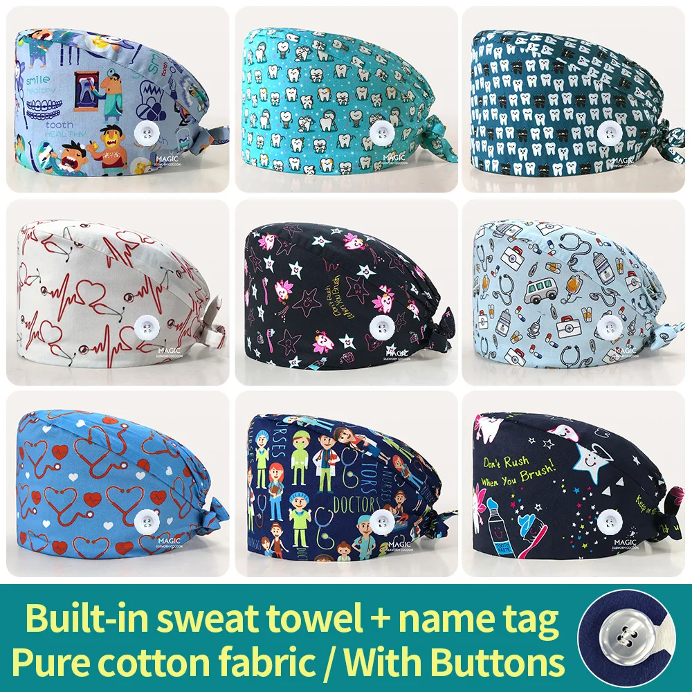 Эластичный регулируемый головной убор для медсестер в стиле унисекс, с мультяшным принтом зубов, шапка для работы в клинике, хлопковый головной убор для питомцев, клубный головной убор