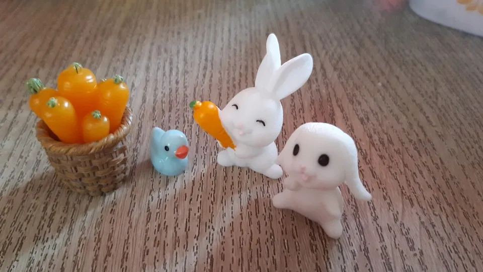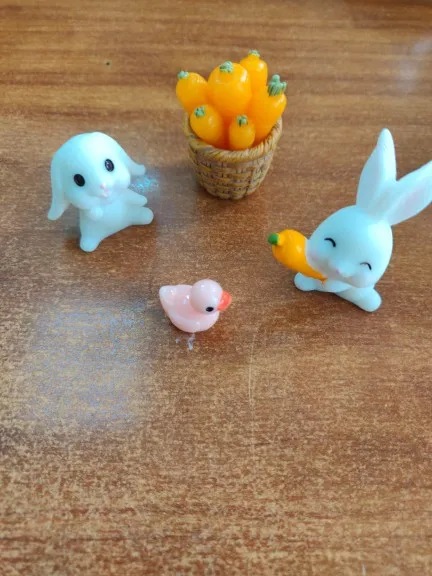 Уиииии... Какая прелесть! Ну очень милые фигурки зайчиков. Маленькие, но аккуратненькие, четко и ровно прорисованные. Материал похож на акрил. В подарок фигурка уточки, очаровательная! Доставка быстрая. Я очень довольна! Спасибо продавцу! Конечно, рекомендую!!!)))