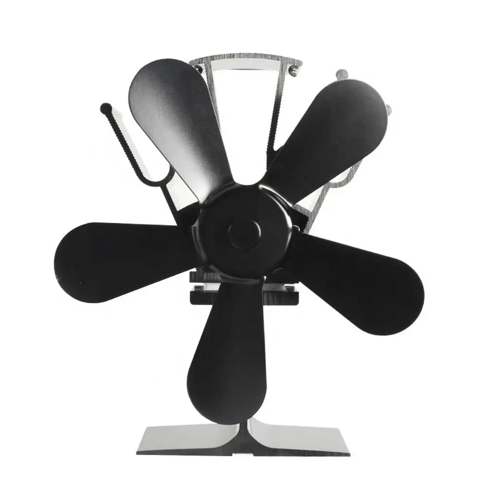 Вентилятор для камина 5 лезвий, рабочая деревянная горелка, эффективно тихий черный домашний открытый вентилятор